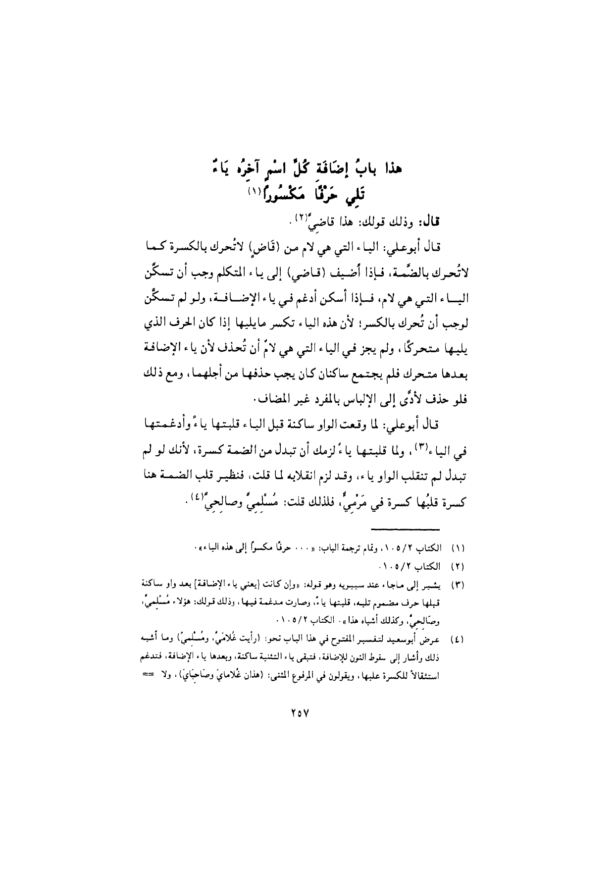 هذا باب إضافة كل اسمٍ آخره ياءٌ تلي حرفًا مكسورًا