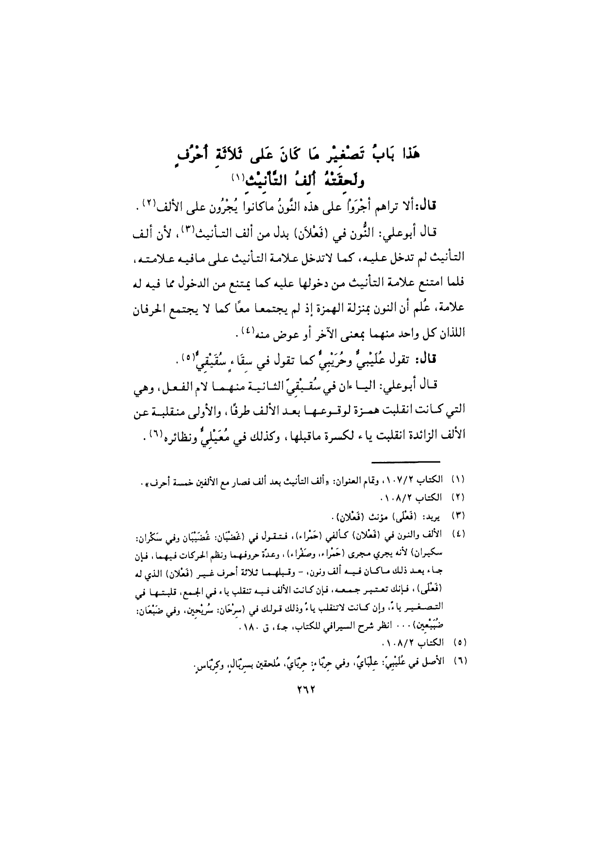 هذا باب تصغير ما كان على ثلاثة أحرف ولحقته ألف التأنيث