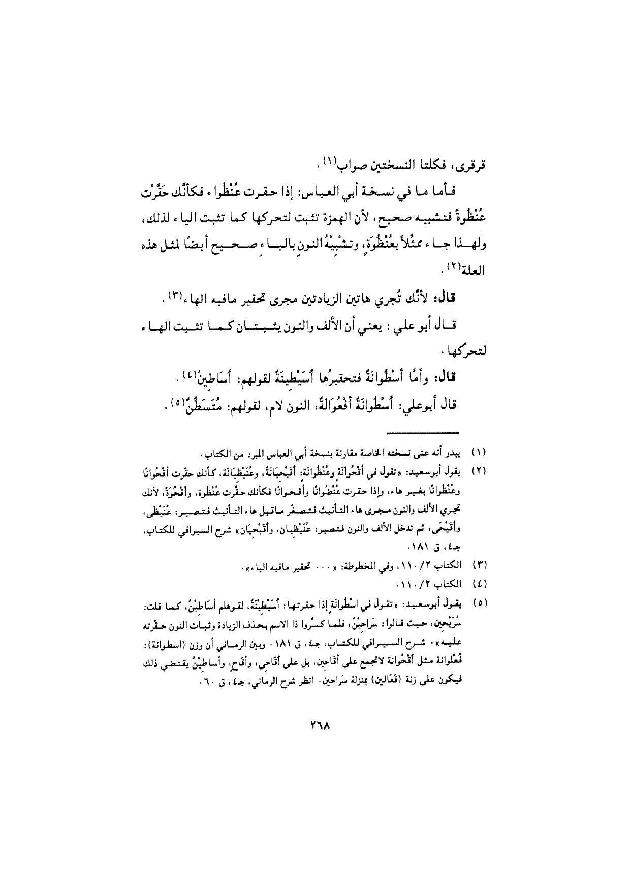 فأما ما في نسخة أبي العباس: إذا حقرت عُنْظُواء فكأنّك حَقَّرْت عُنْظُوةً فتشبيه صحيح، لأن الهمزة تثبت لتحركها كما تثبت الياء لذلك، ولهذا جاء ممثَّلاً بعُنْظُوَةٍ، وتشبيهُ النون بالياء صحيح أيضًا لمثل هذه العلة.