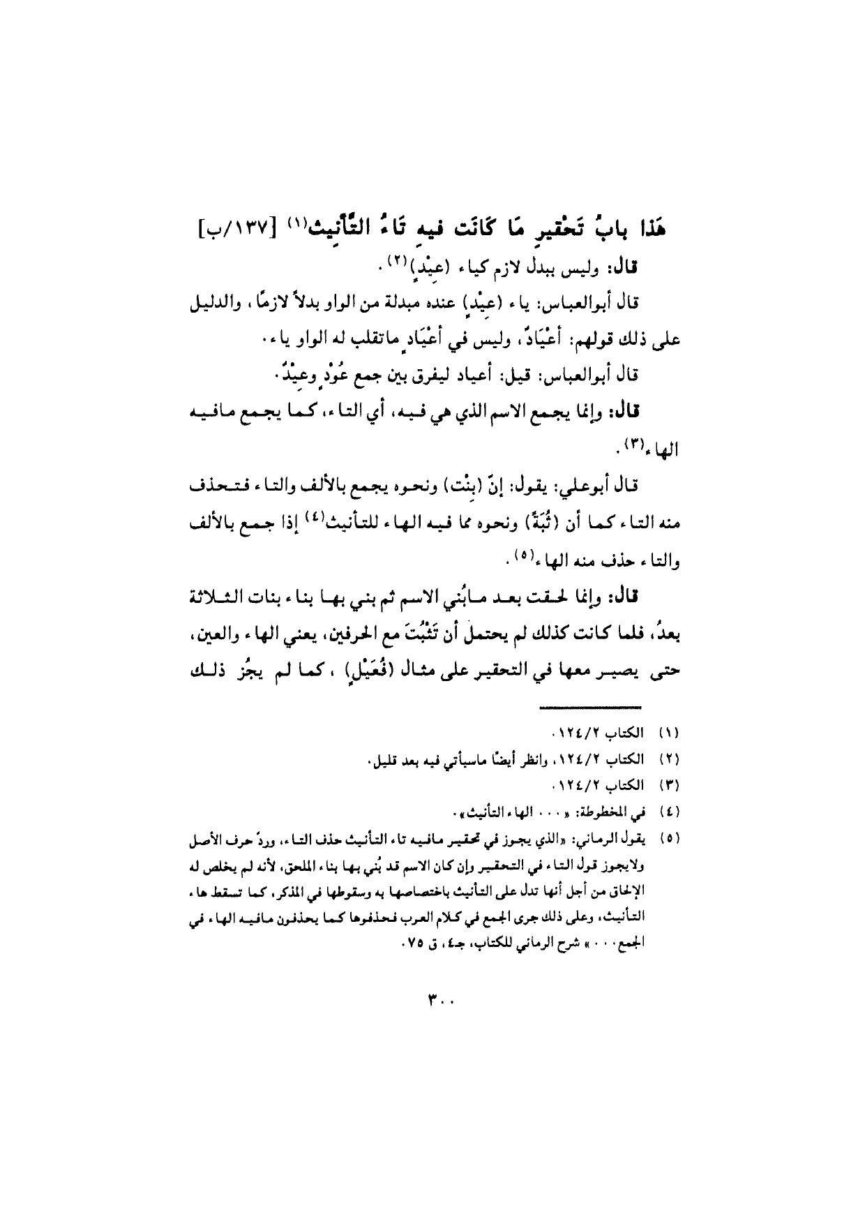 هذا باب تحقير ما كانت فيه تاء التأنيث