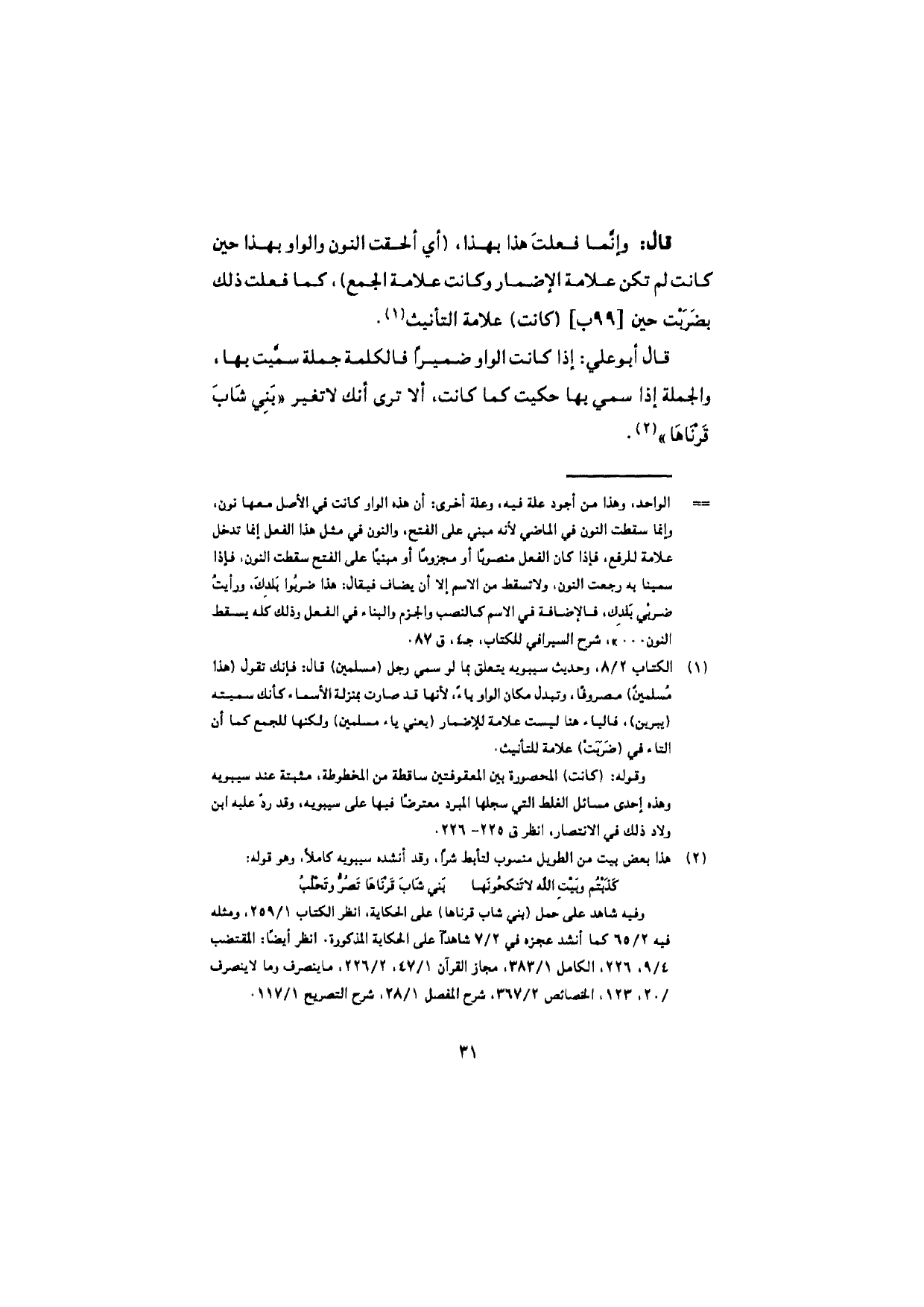 قال: وإنما فعلتَ هذا بهذا، (أي ألحقت النون والواو بهذا حين كانت لم تكن علامة الإضمار وكانت علامة الجمع)، كما فعلت ذلك بضَرَبْت حين (كانت) علامة التأنيث.