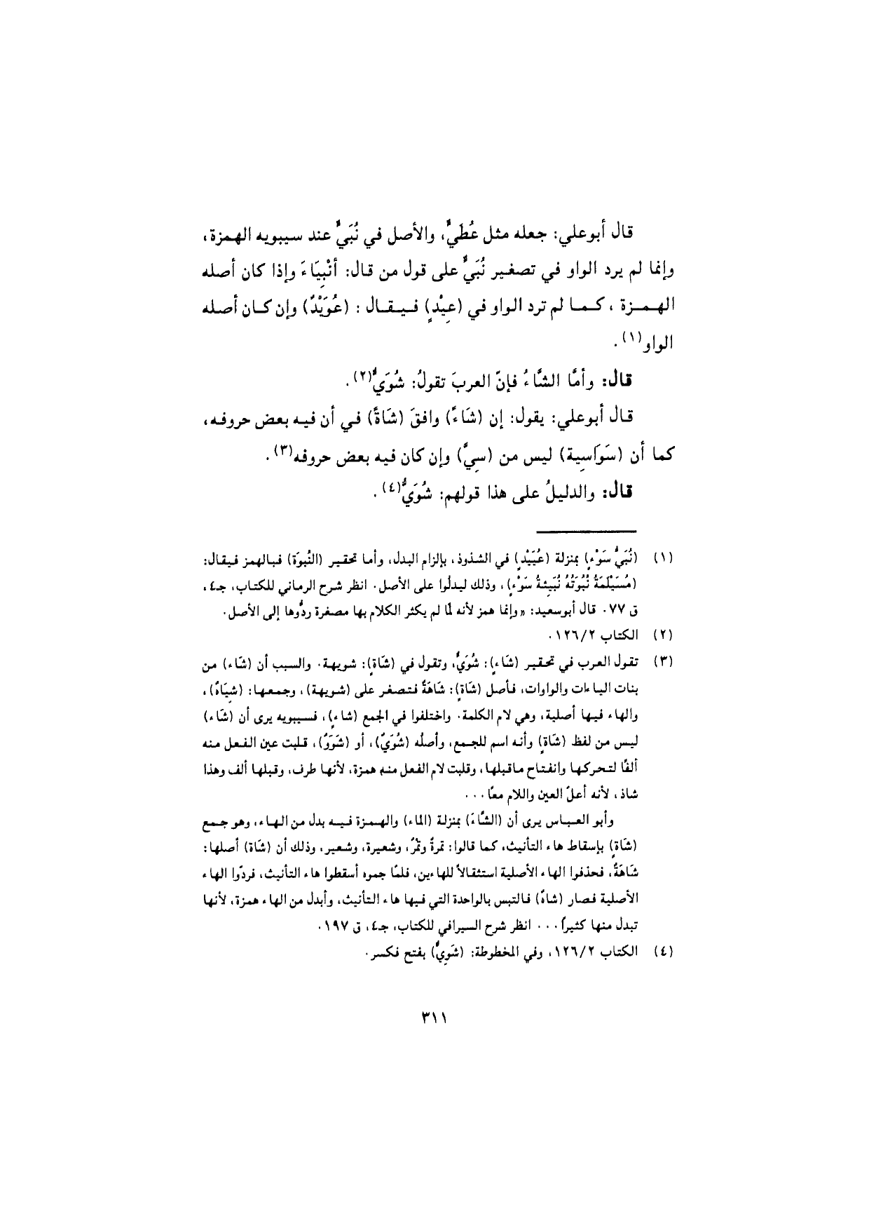 قال: وأمّا الشّاءُ فإنّ العرب تقول: شُوَيٌّ.