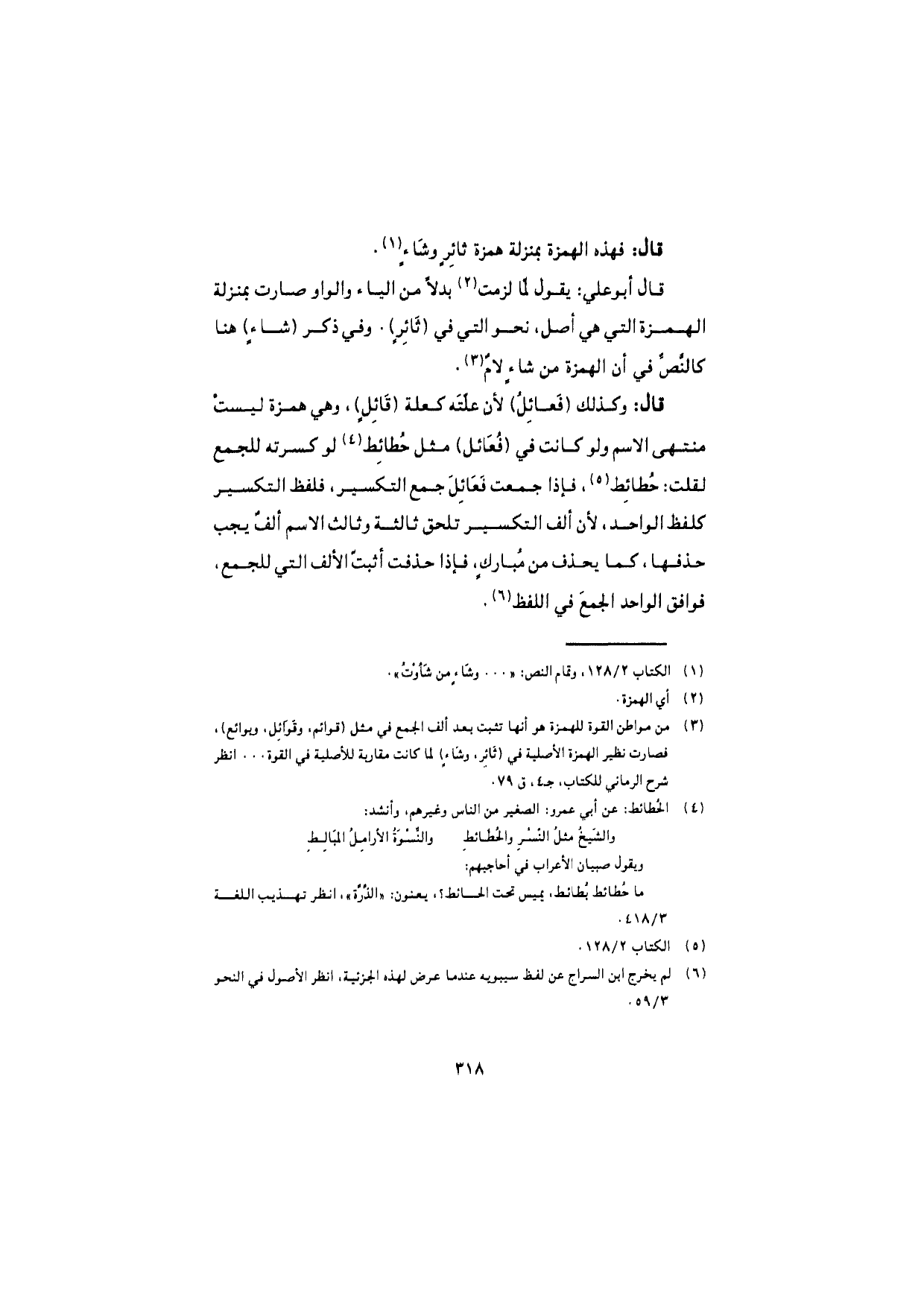 قال: فهذه الهمزة بمنزلة همزة ثائِرٍ وشاءٍ.