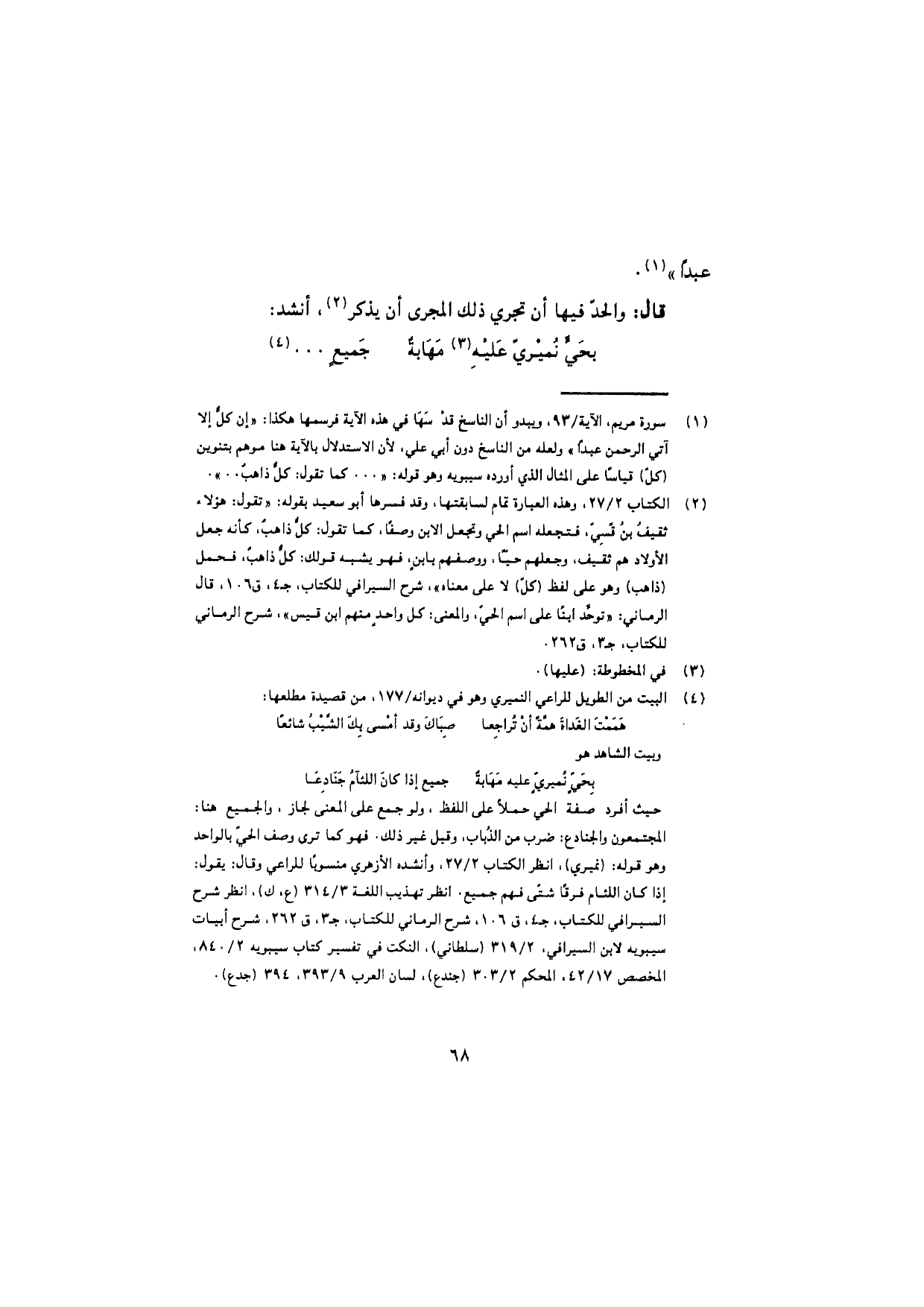 قال: والحدّ فيها أن تجري ذلك المجرى أن يذكر، أنشد: