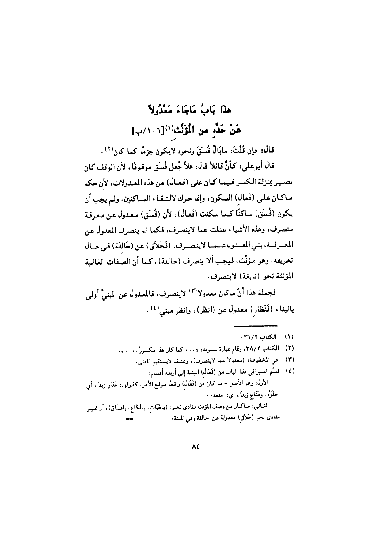هذا بابُ ما جاء معدولاً عن حَدِّه من المُؤنّثِ