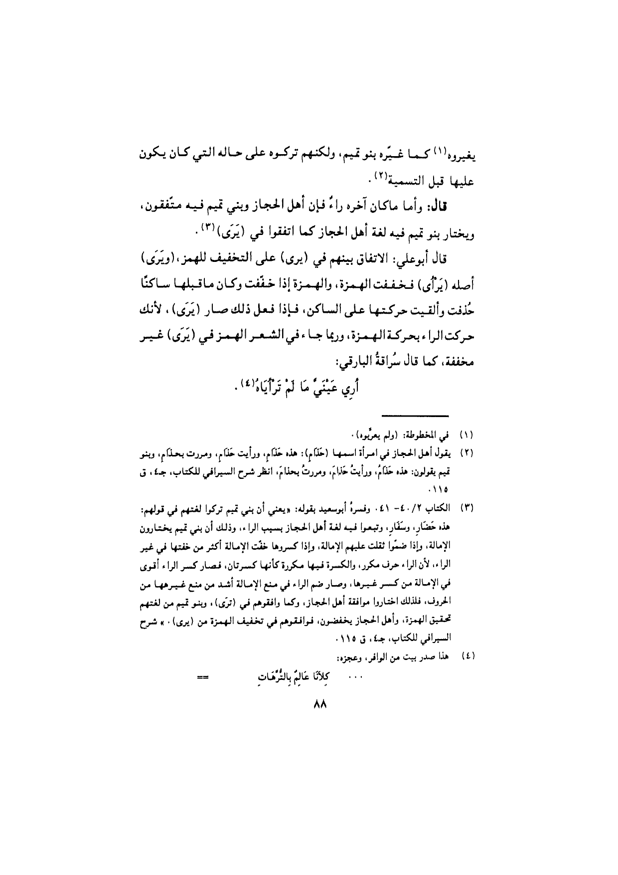 يغيروه كما غيّره بنو تميم، ولكنهم تركوه على حاله التي كان يكون عليها قبل التسمية.
