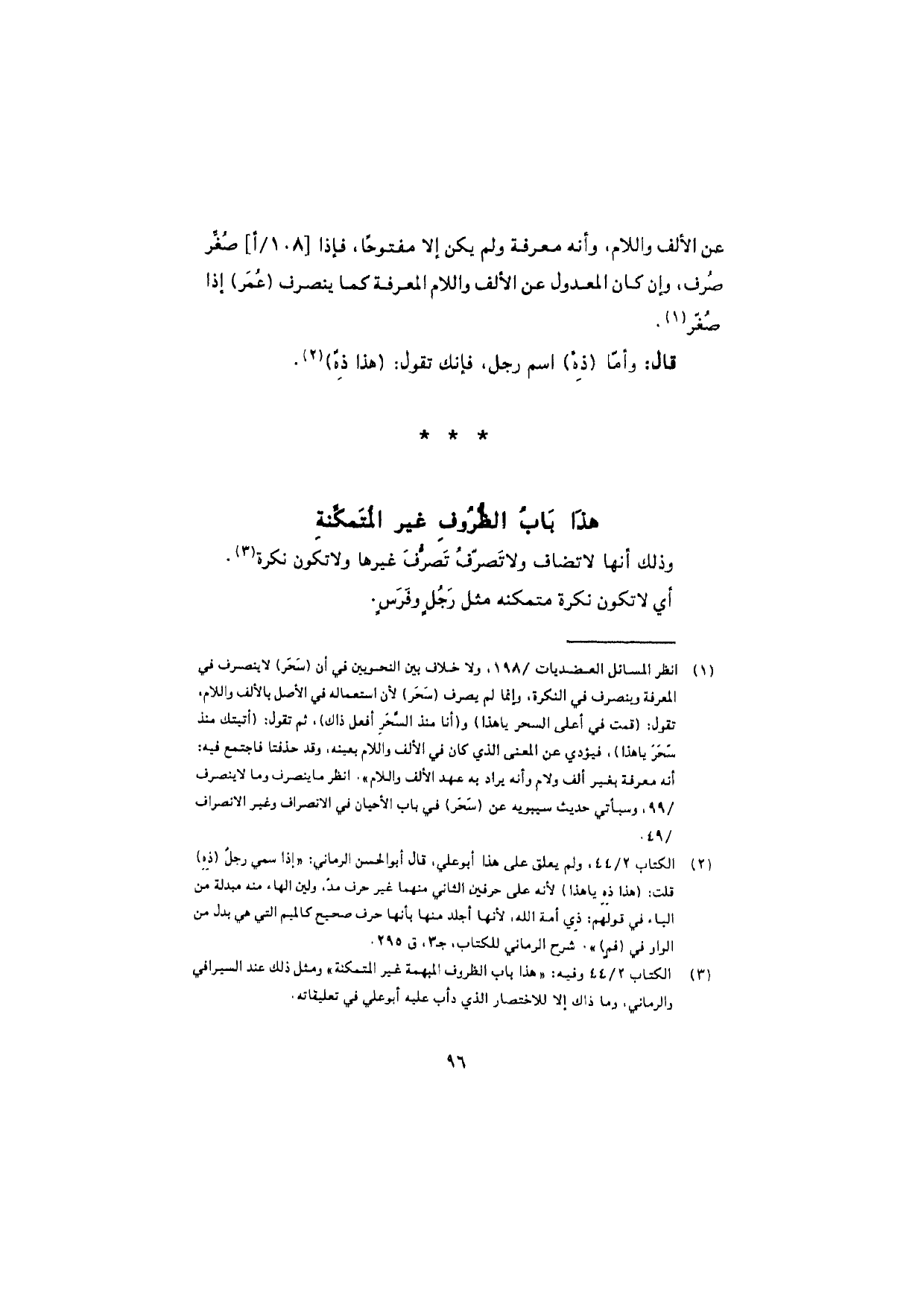 وذلك أنها لا تضاف ولا تصرّفُ تَصرُّفَ غيرها ولا تكون نكرة.