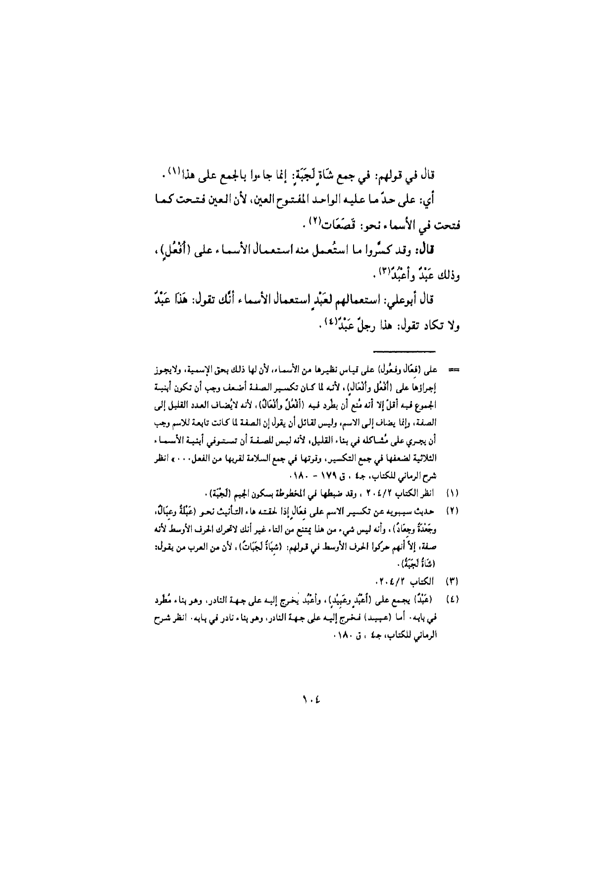 قال: وقد كسَّروا ما استُعمل منه استعمال الأسماء على (أفْعُلٍ)، وذلك عبدٌ وأعْبُدٌ.