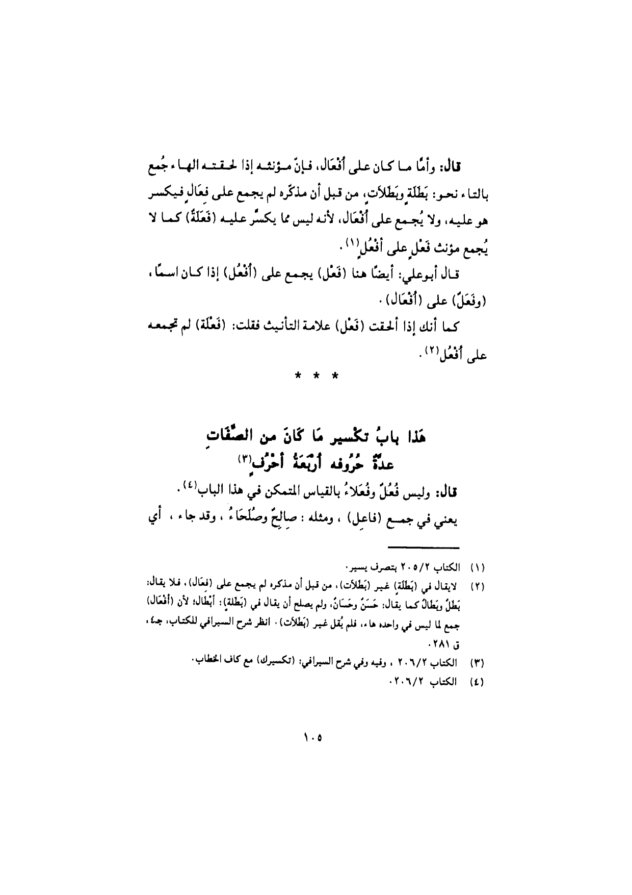 هذا باب تكسير ما كان من الصفات عدَّةُ حروفه أربعة أحرف