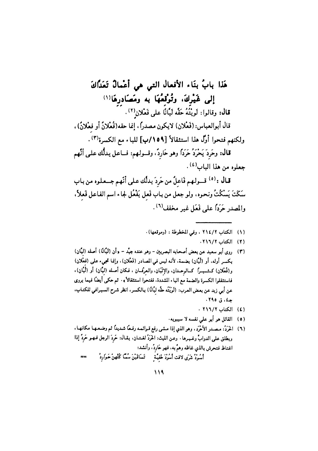هذا باب بناء الأفعال التي هي أعمالٌ تَعدّاك إلى غيرك، وتُوقِعُها به ومصادِرِها