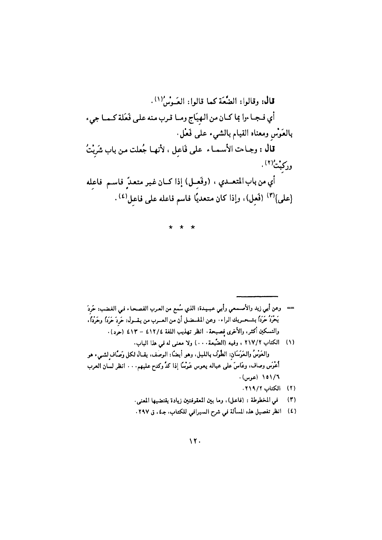 قال: وقالوا: الضَّعَة كما قالوا: العَوْسُ.