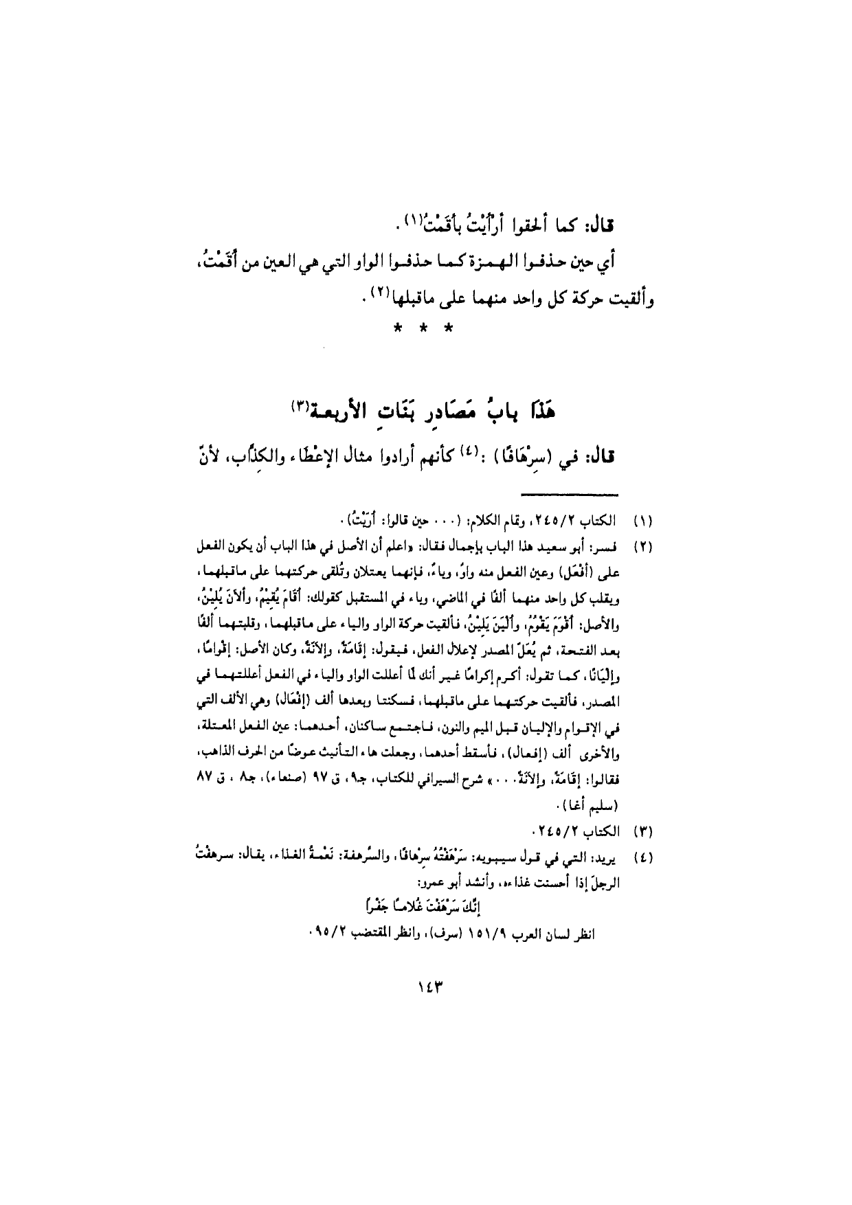 قال: في (سِرْهافًا): كأنهم أرادوا مثال الإعْطاء والكِذّاب، لأنّ