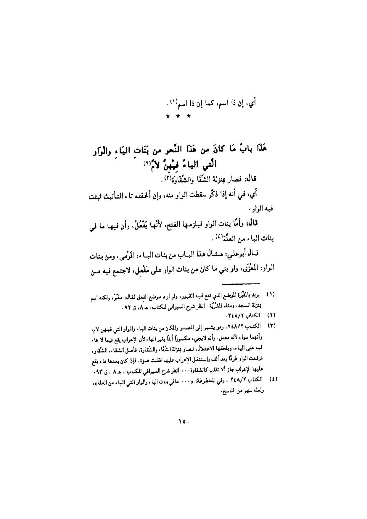 هذا باب ما كان من هذا النحو من بنات الياء والواو التي الياء فيهن لامٌ