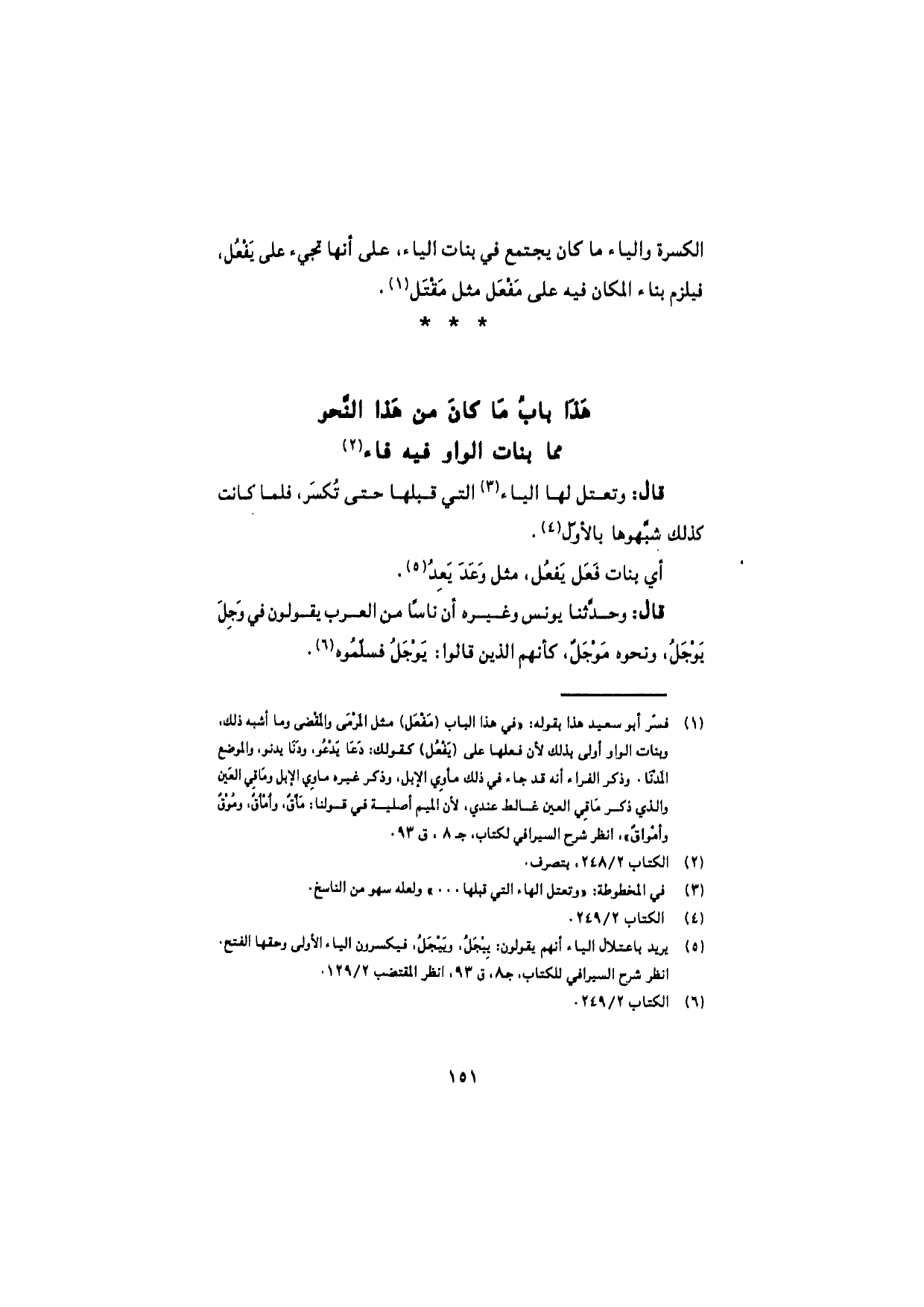 هذا باب ما كان من هذا النحو مما بنات الواو فيه فاء