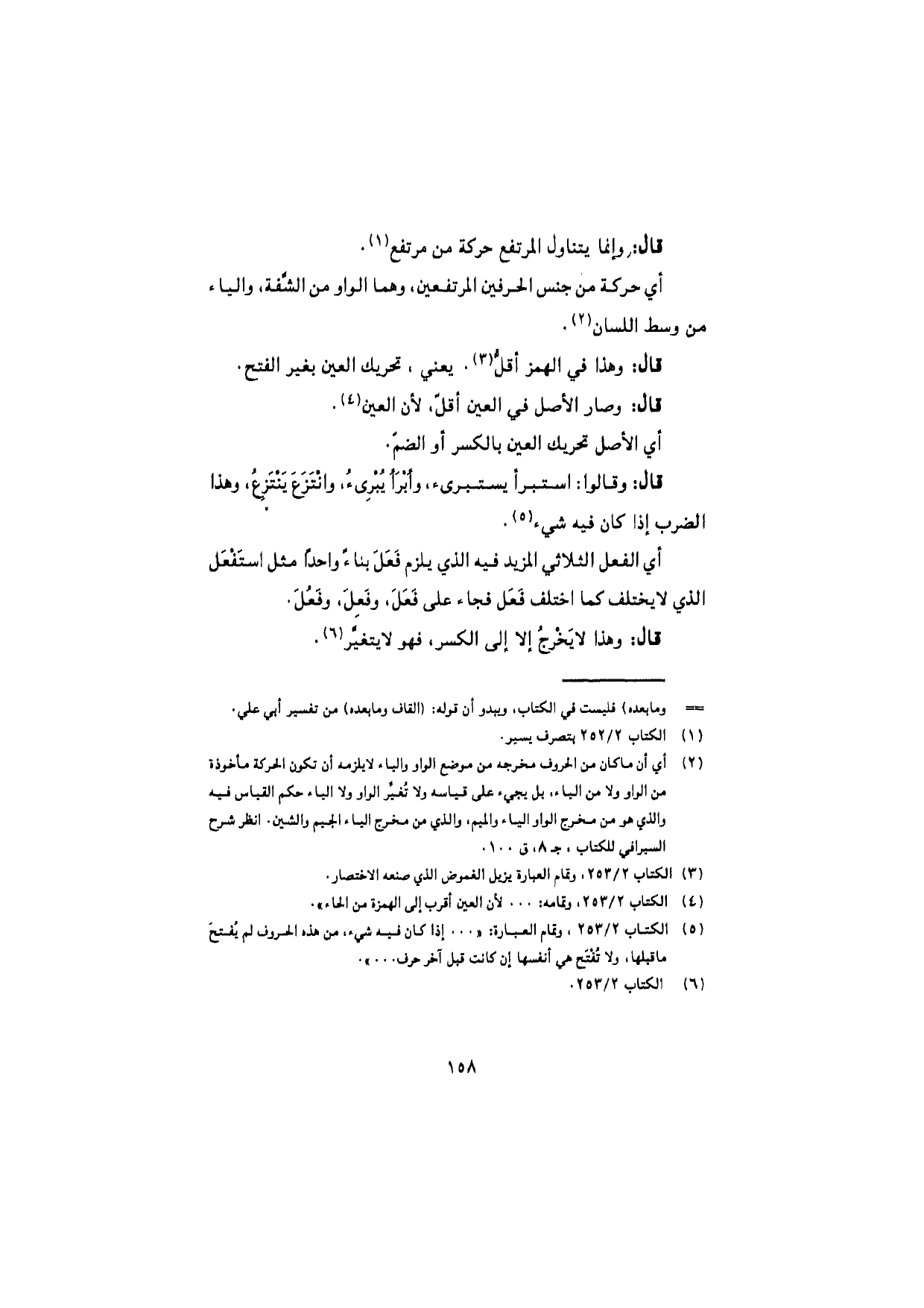 قال: وهذا لا يَخْرُجُ إلا إلى الكسر، فهو لا يتغيَّر.