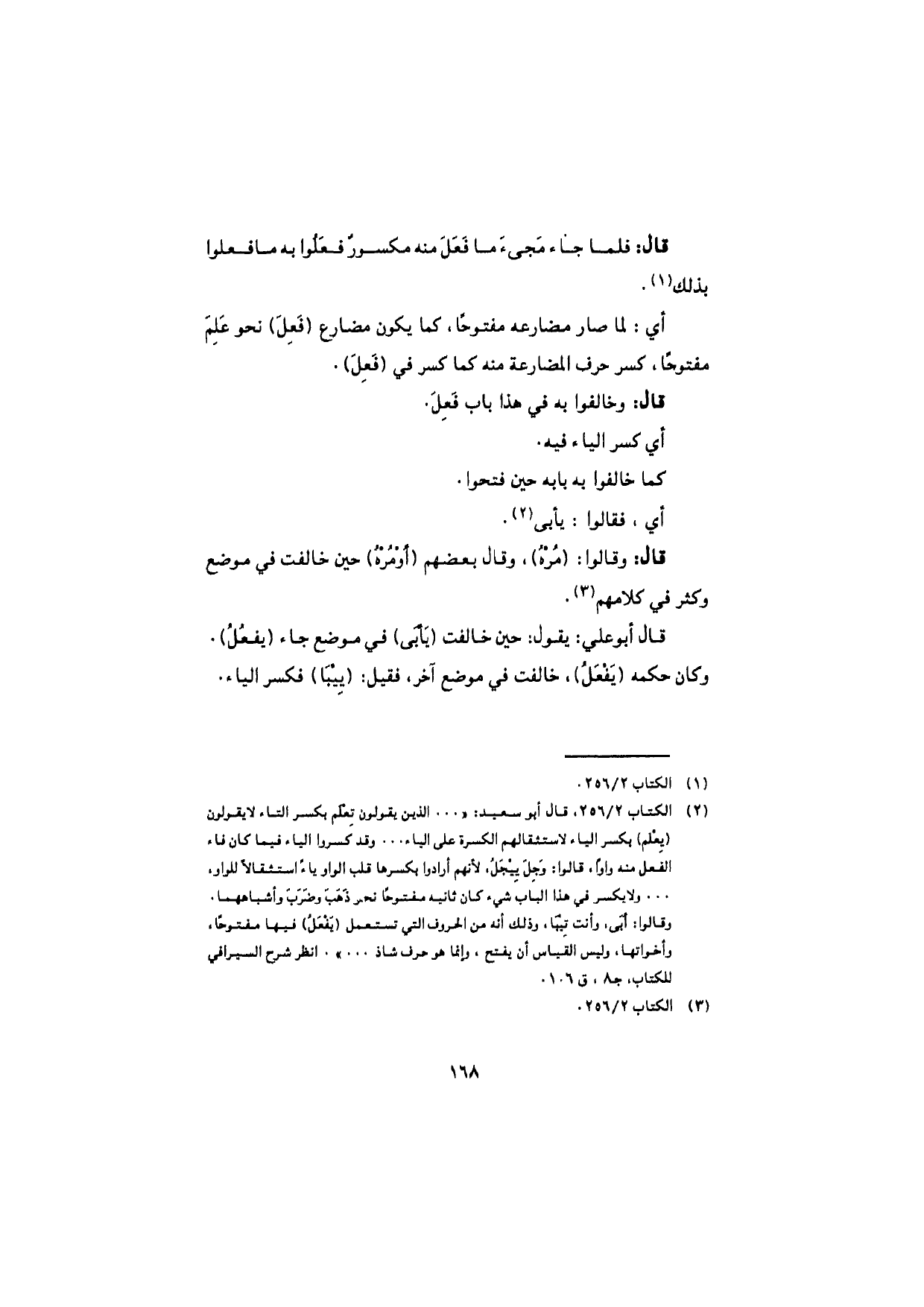 قال أبو علي: يقول: حين خالفت (يَأبَى) في موضع جاء (يفعُلُ). وكان حكمه (يَفْعَلُ)، خالفت في موضع آخر، فقيل: (يِيبَا) فكسر الياء.