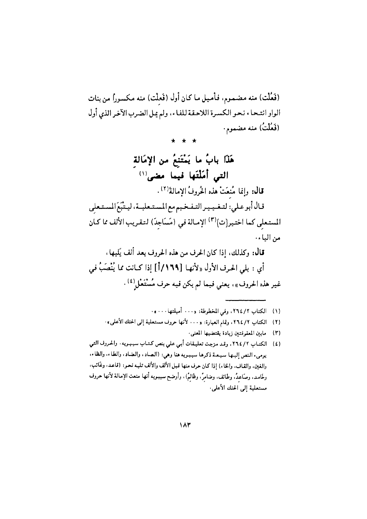 قال: وإنما مُنِعَت هذه الحروف الإمالةَ.