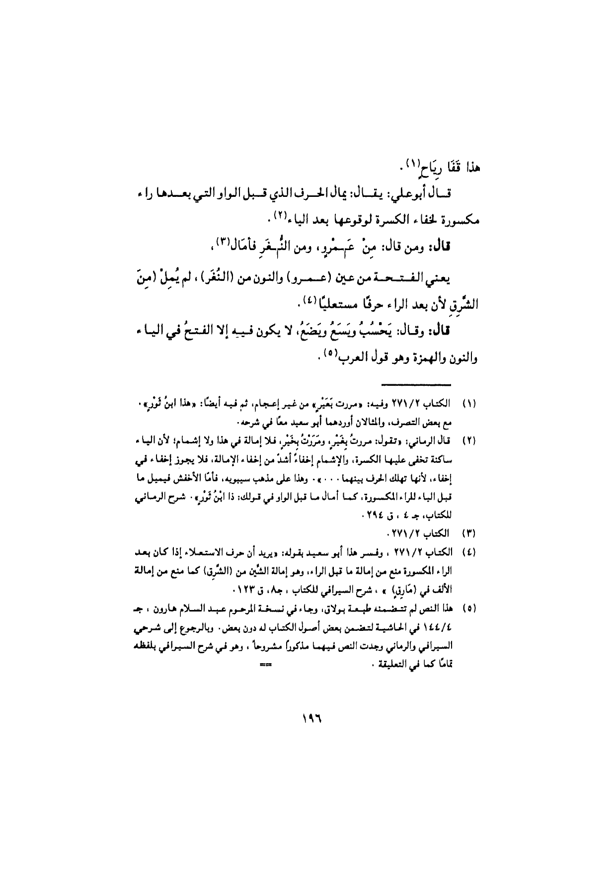 قال أبو علي: يقال: يمال الحرف الذي قبل الواو التي بعدها راء مكسورة لخفاء الكسرة لوقوعها بعد الياء.