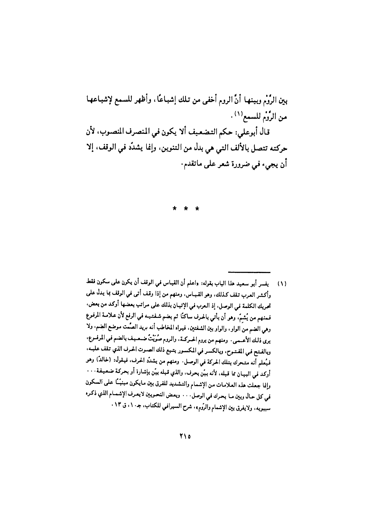 بين الرَّوْم وبينها أنّ الروم أخفى من تلك إشباعًا، وأظهر للسمع لإشباعها من الرَّوْم للسمع.