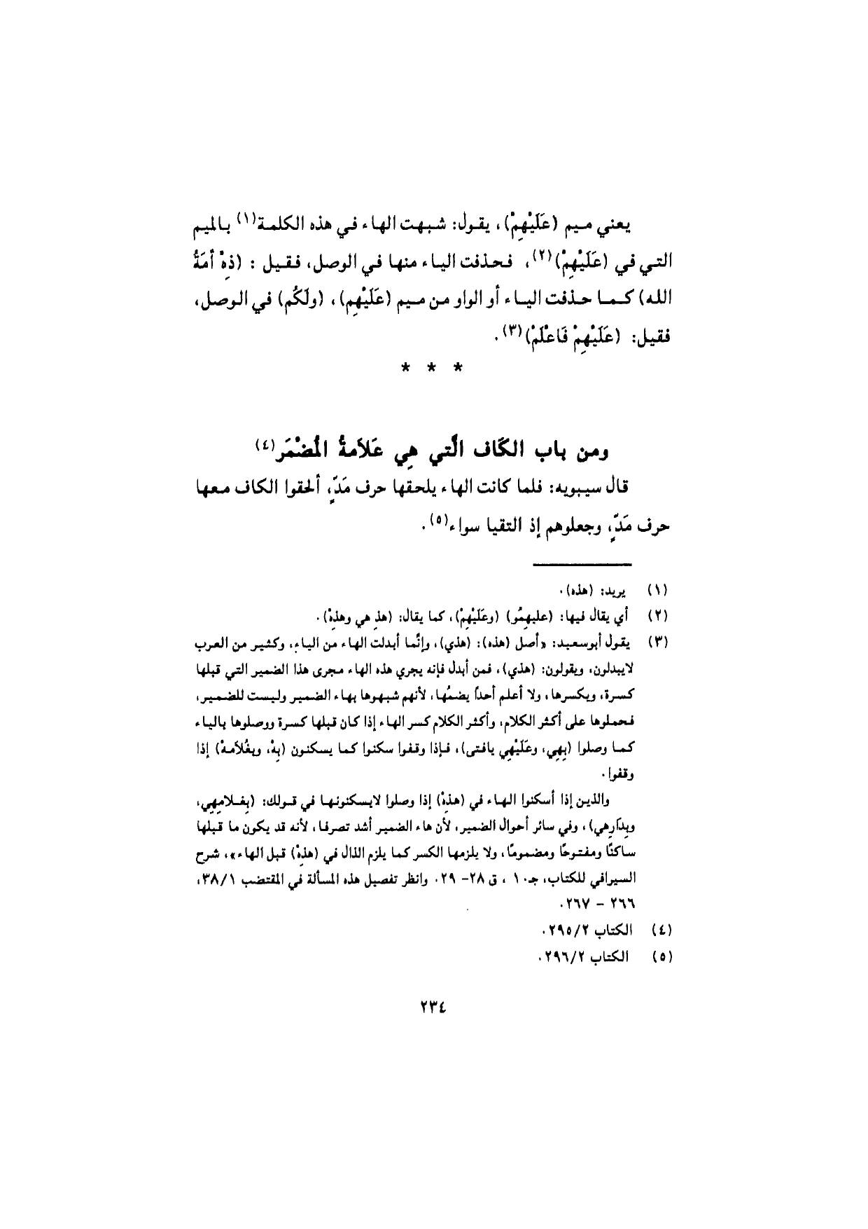 يعني ميم (عَلَيْهِمْ)، يقول: شبهت الهاء في هذه الكلمة بالميم التي في (عَلَيْهِمْ)، فحذفت الياء منها في الوصل، فقيل: (ذِهْ أمَةُ الله) كما حذفت الياء أو الواو من ميم (عَلَيْهِمْ)، (ولَكُم) في الوصل، فقيل: (عليهم فاعلم).