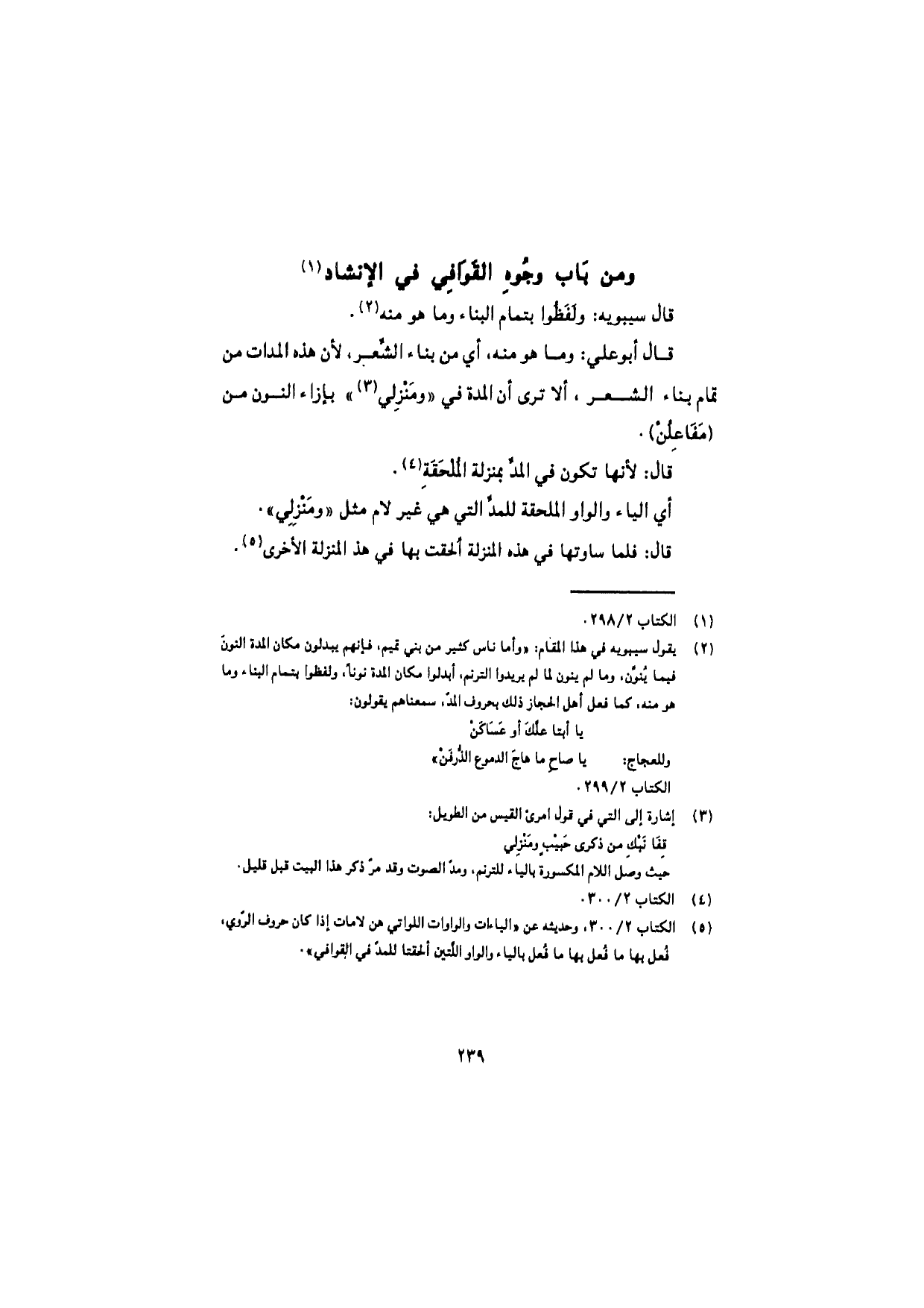 قال أبو علي: وما هو منه، أي من بناء الشّعر، لأن هذه المدات من تمام بناء الشعر، ألا ترى أن المدة في "ومَنْزِلي" بإزاء النون من (مَفَاعِلُنْ).