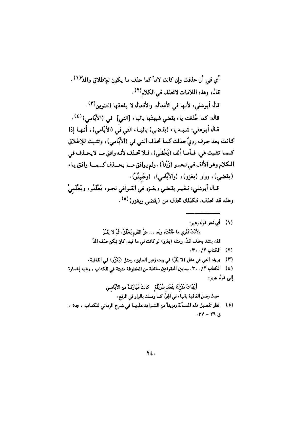 قال أبو علي: نظير يقضي ويغزو في القوافي نحو: يَعْلَمُو، ويَعْلَمِي وهذه قد تحذف، فكذلك تحذف من (يقضي ويغزو).
