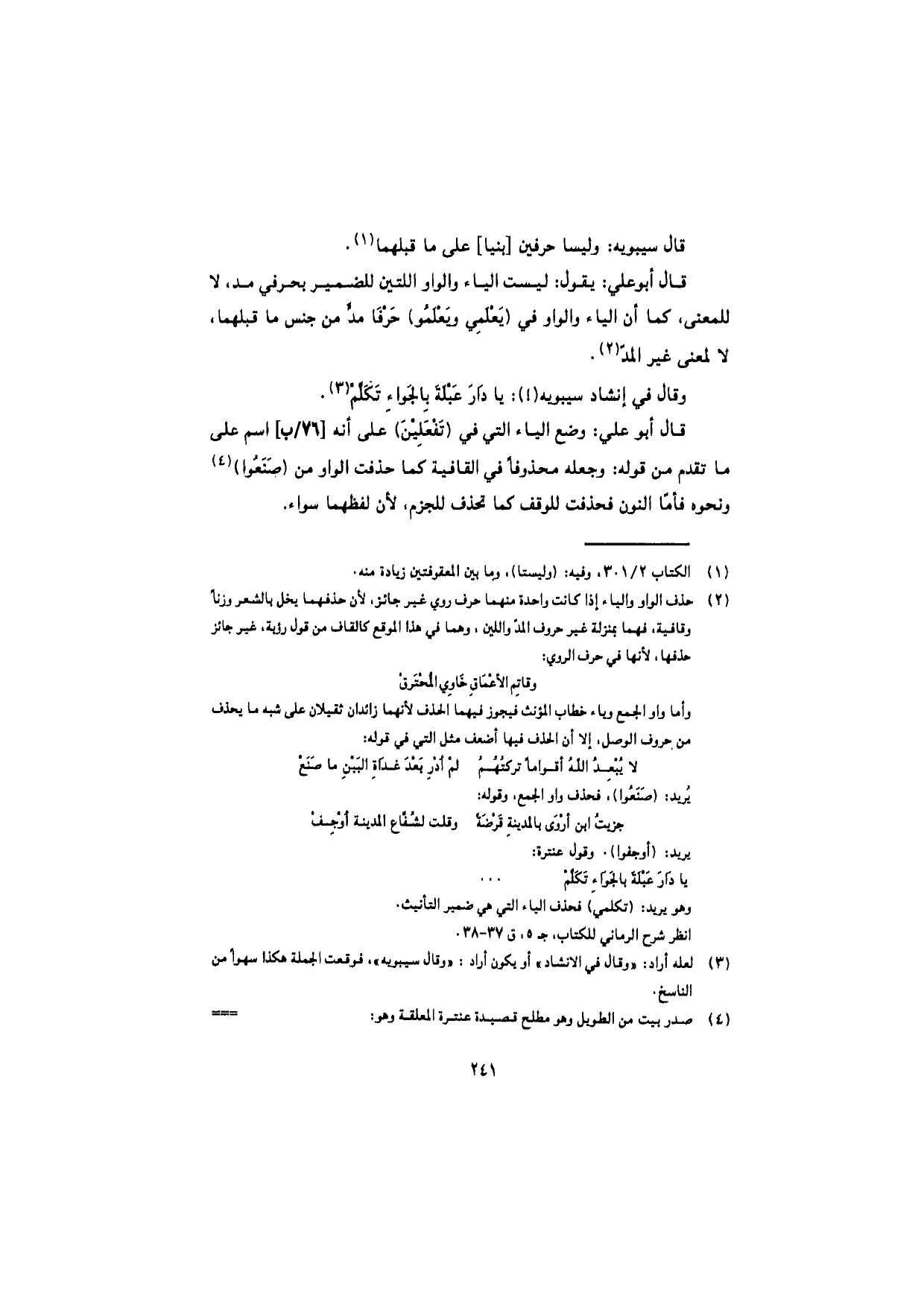 وقال في إنشاد سيبويه (؟): يا دارَ عبلةَ بالجواءِ تَكَلَّمْ.