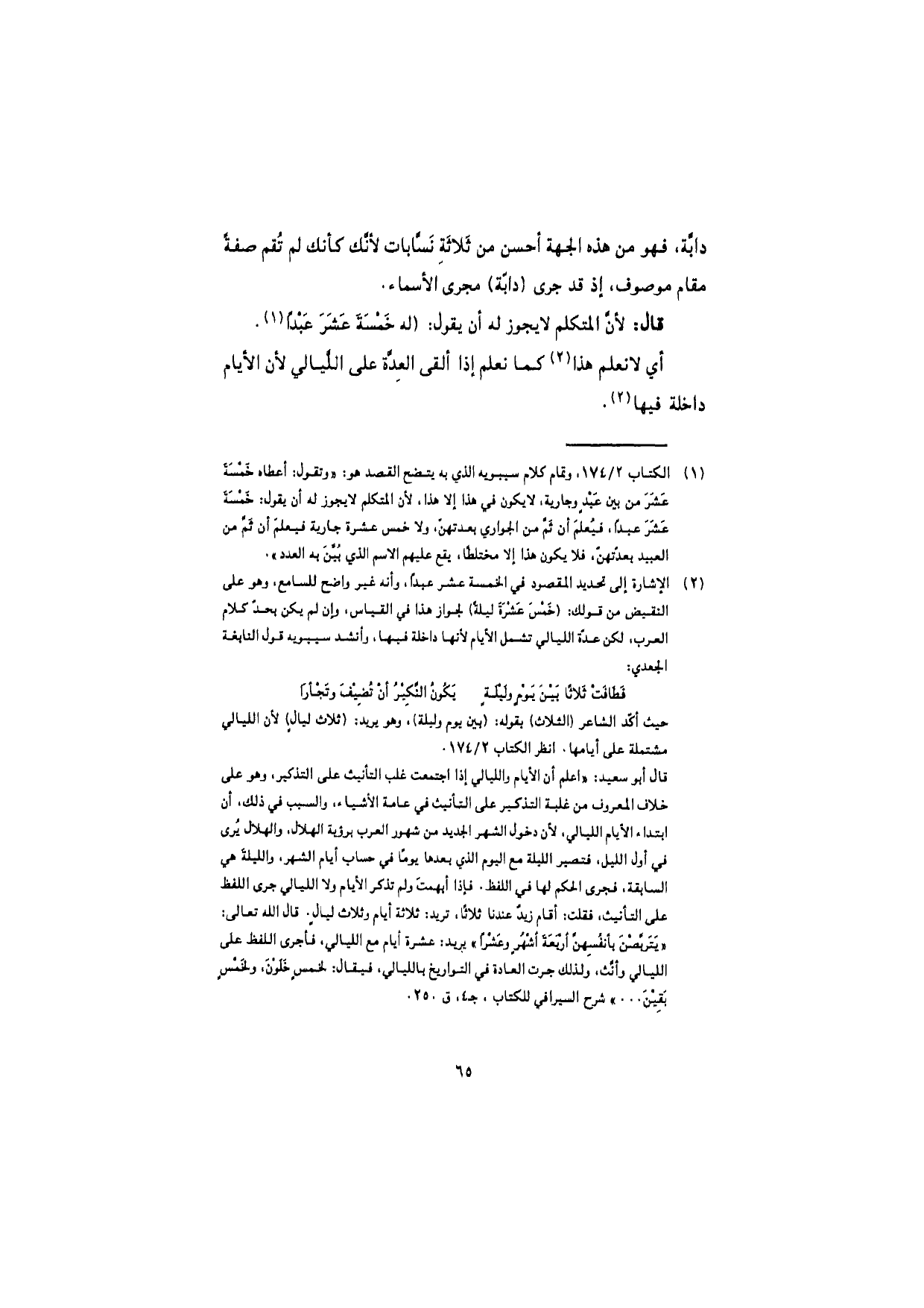 أي لا نعلم هذا كما نعلم إذا ألقى العِدَّة على اللّيالي لأن الأيام داخلة فيها.