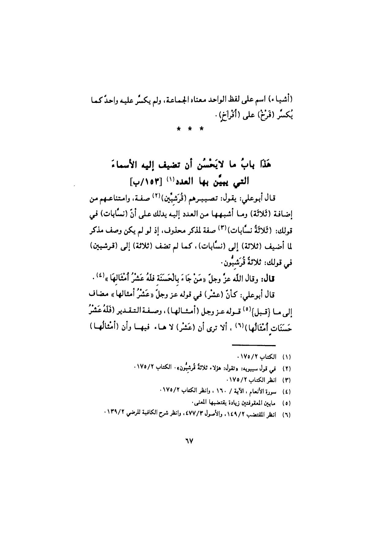 هذا باب ما لا يحسُن أن تضيف إليه الأسماء التي يبيَّن بها العدد [153/ ب]