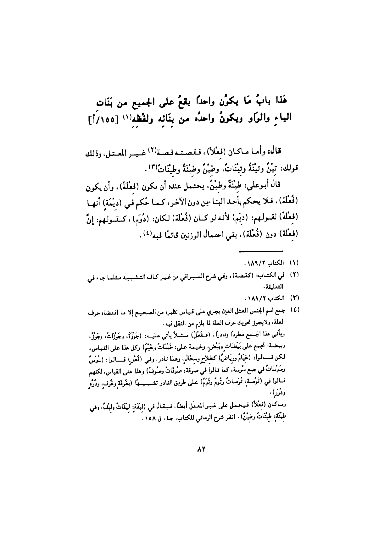 هذا باب ما يكون واحدًا يقع على الجميع من بنات الياء والواو يكون واحده من بنائه ولفظه [155/أ]
