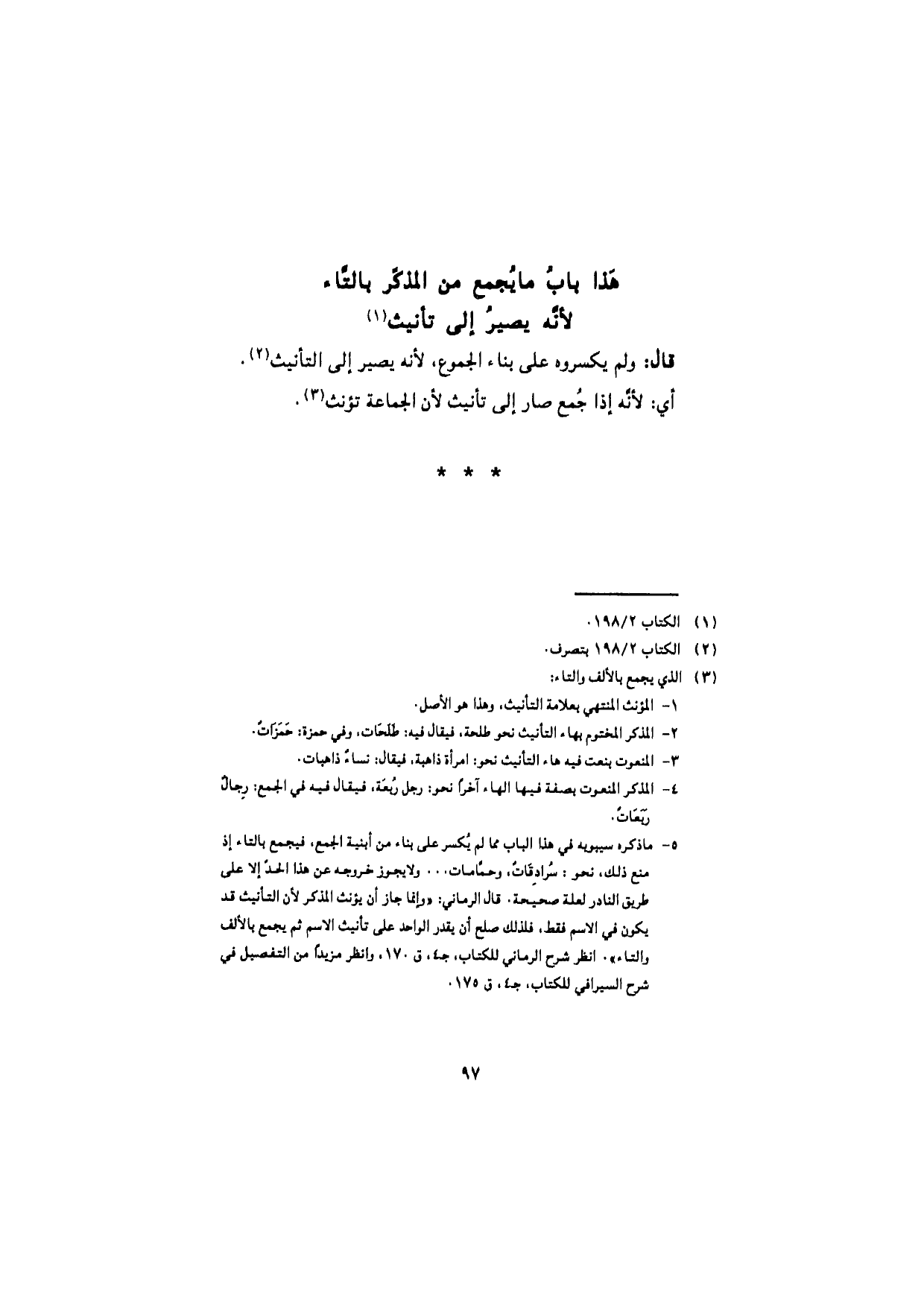 هذا باب ما يُجمع من المذكّر بالتّاء لأنّه يصير إلى تأنيث