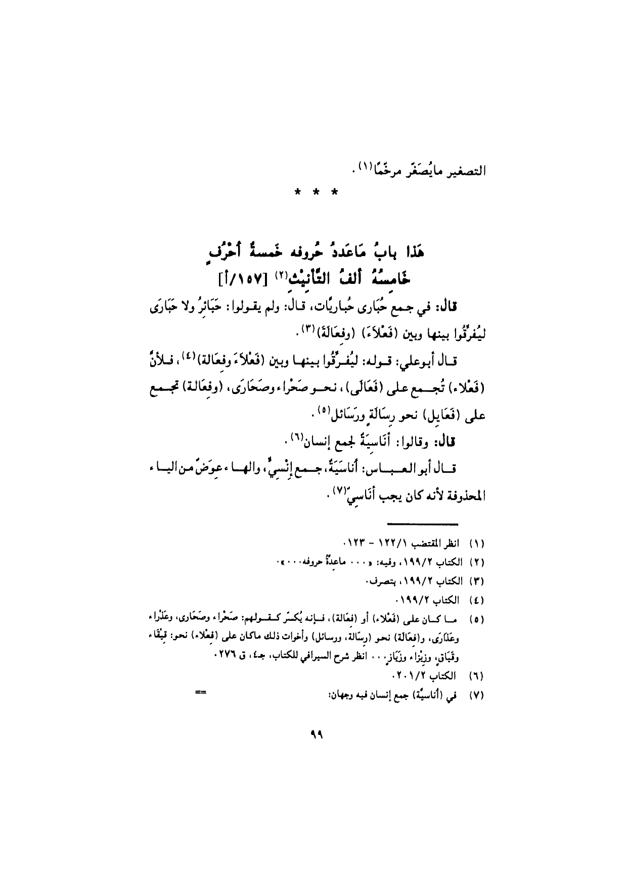 هذا باب ما عدد حروفه خمسة أحرف خامسه ألف التأنيث [157/أ]