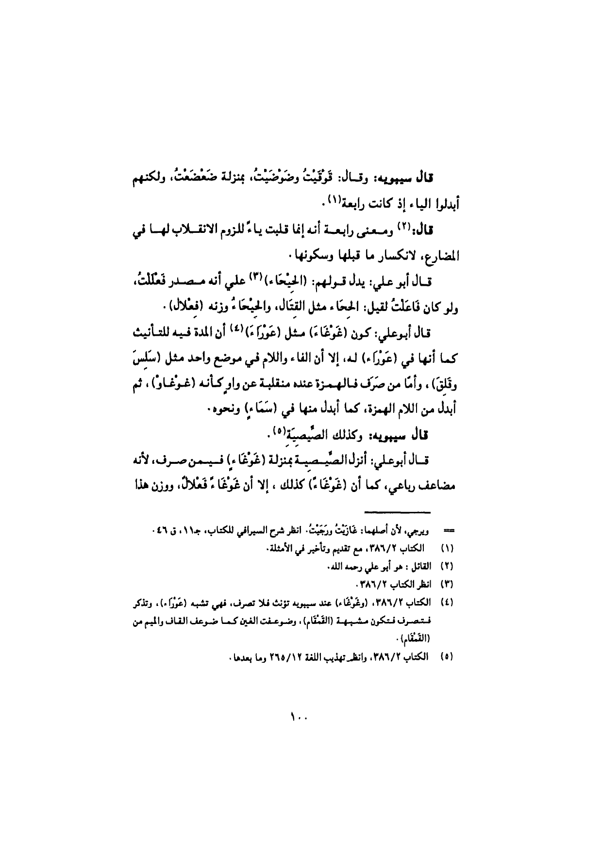 قال سيبويه: وقال: قَوْقَيْتُ وضَوْضَيْتُ، بمنزلة ضَعْضَعْتُ، ولكنهم أبدلوا الياء إذ كانت رابعة.