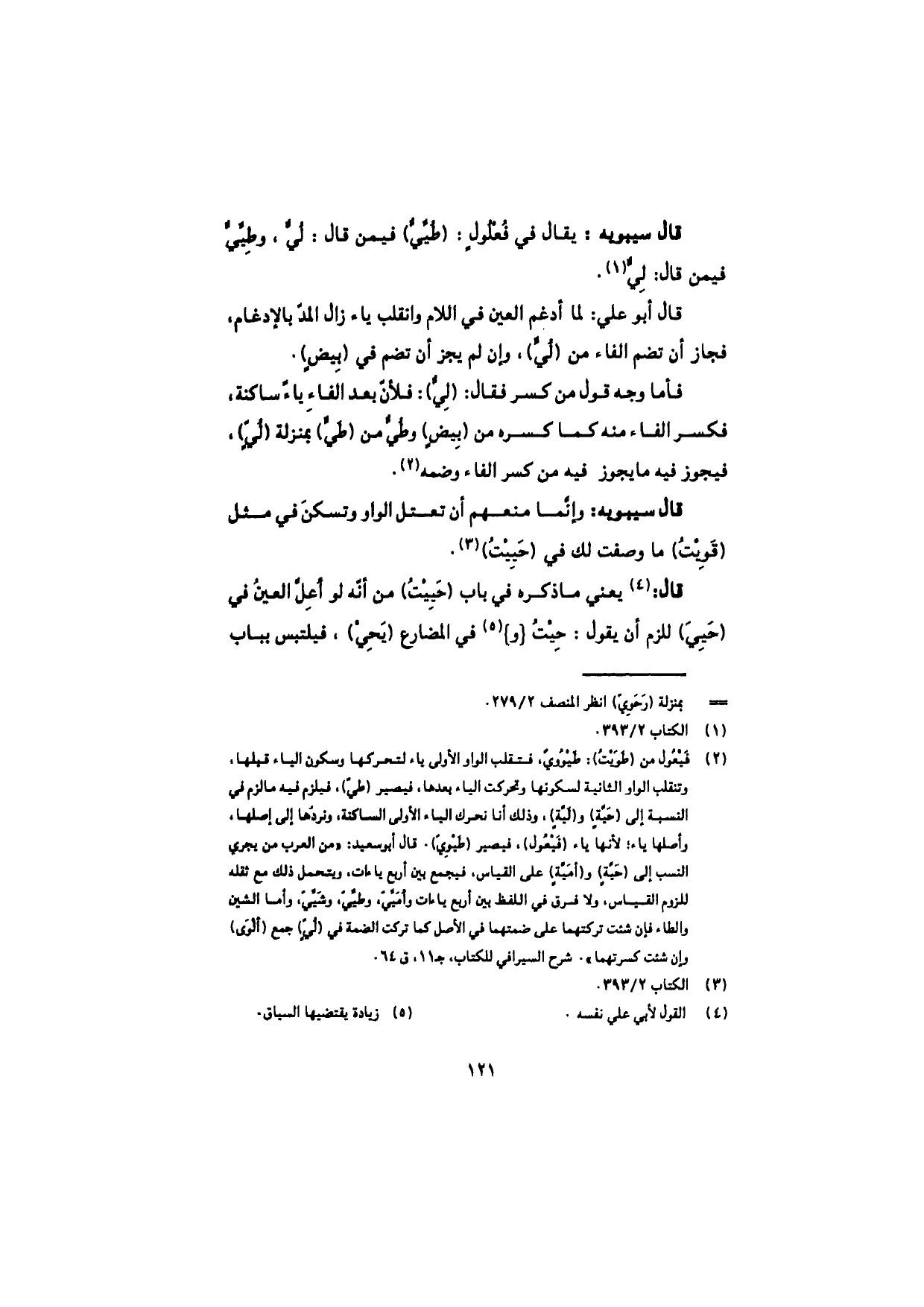 قال سيبويه: يقال في فُعْلُولٍ: (طُيُّيٌّ) فيمن قال: لُيٌّ، وطِيِّيٌّ فيمن قال: لِيٌّ.