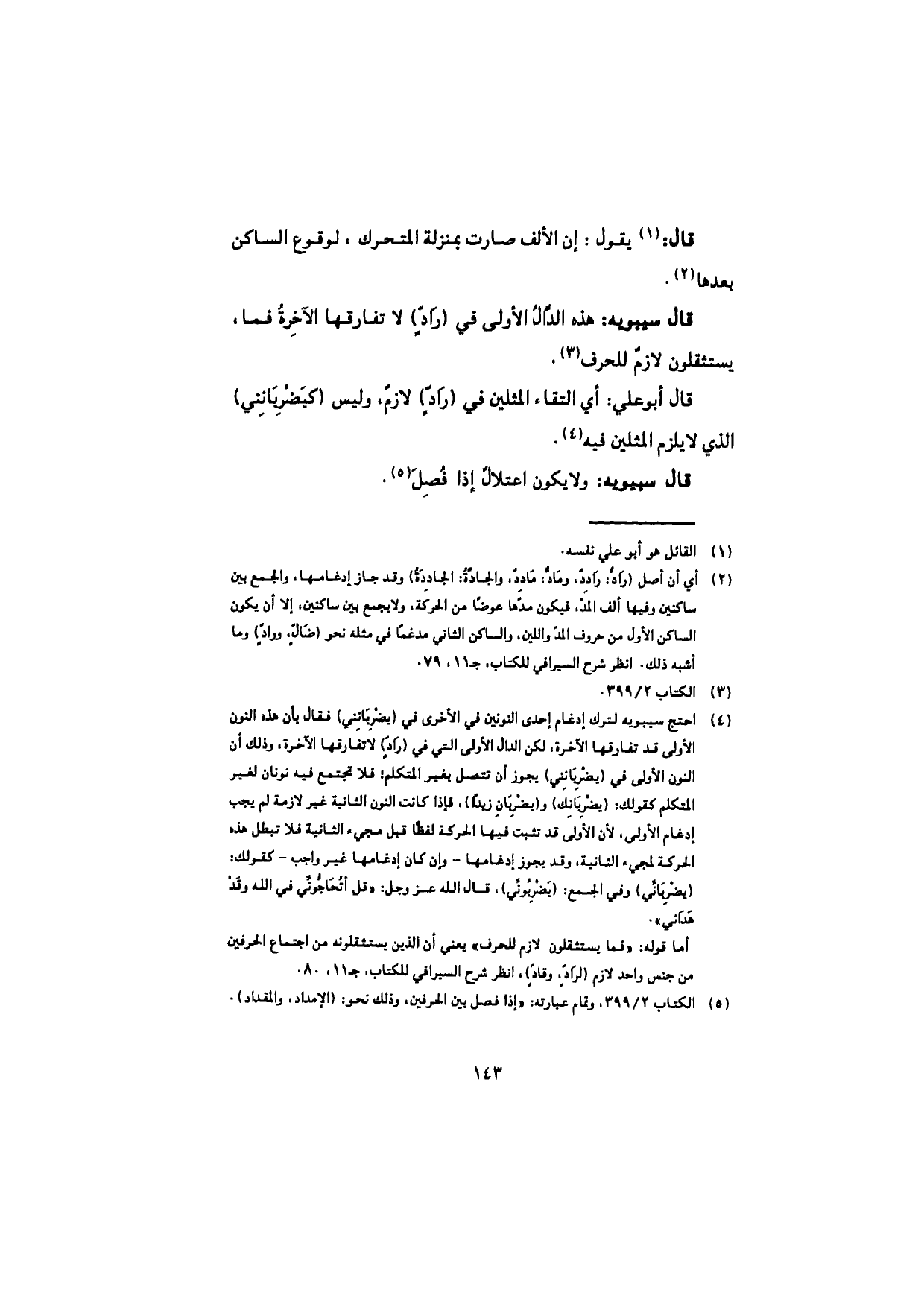 قال سيبويه: هذه الدّال الأولى في (رادٍّ) لا تفارقها الآخِرَةُ فما يستثقلون لازمٌ للحرف.