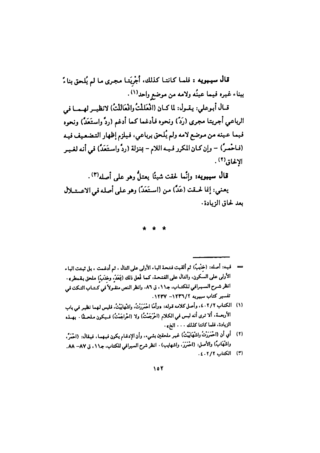 قال سيبويه: فلما كانتا كذلك، أجْرِيَتا مجرى ما لم يُلحق بناءٌ ببناء غيره فيما عينُه ولامه من موضع واحد.