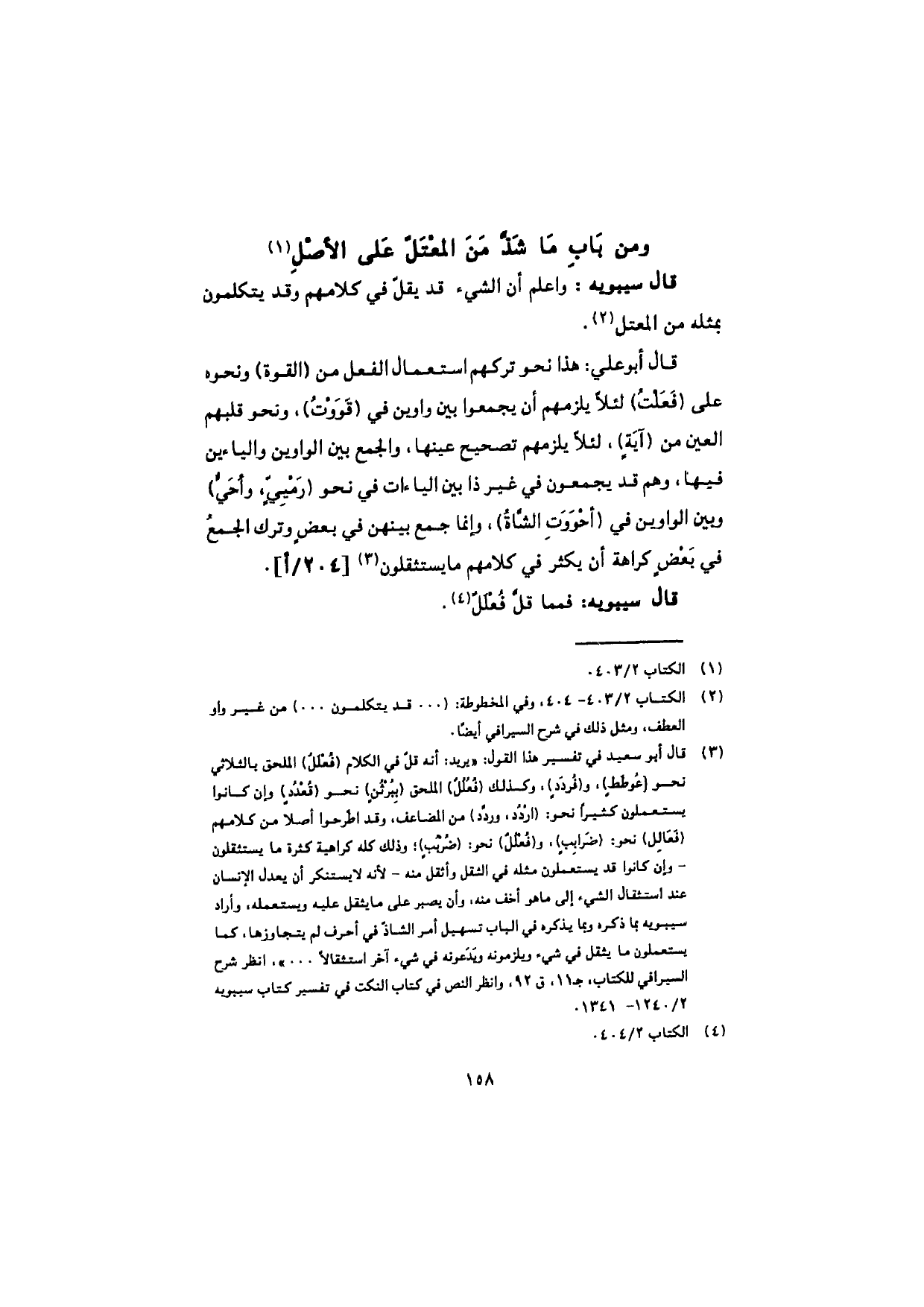 قال سيبويه: واعلم أن الشيء قد يقلّ في كلامهم وقد يتكلمون بمثله من المعتل.