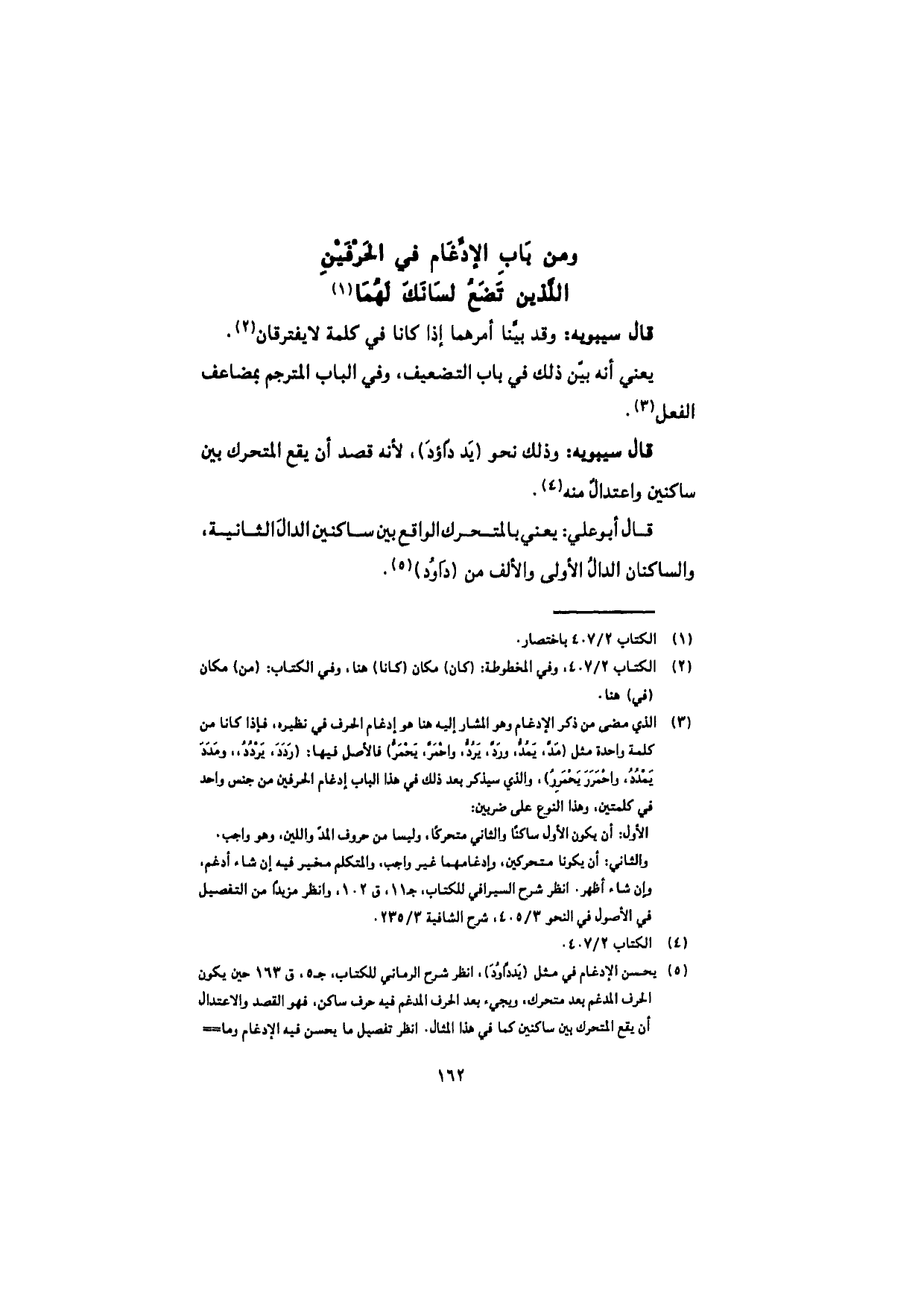 ومن باب الإدِّغام في الحرفين اللذين تضع لسانك لهما