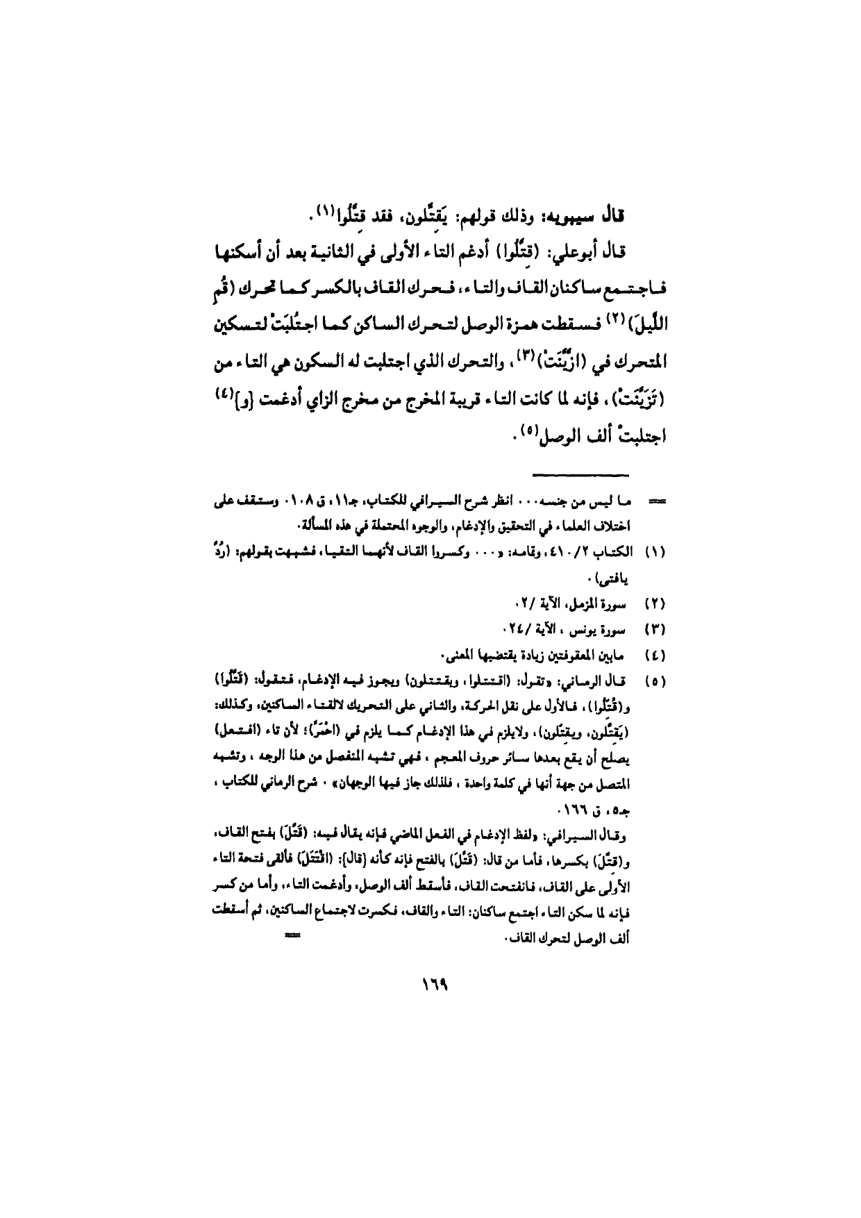 قال سيبويه: وذلك قولهم: يَقِتّلون، فقد قِتّلُوا.