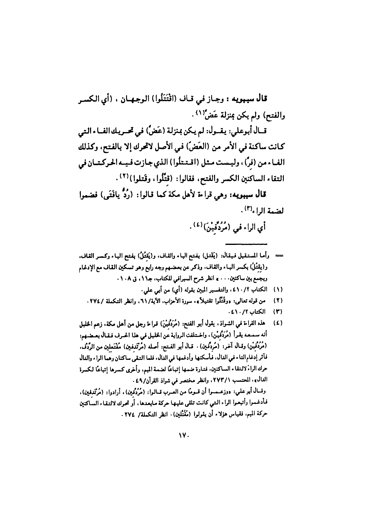 قال سيبويه: وجاز في قاف (اقْتَتَلُوا) الوجهان، (أي الكسر والفتح) ولم يكن بمنزلة عَضّ.