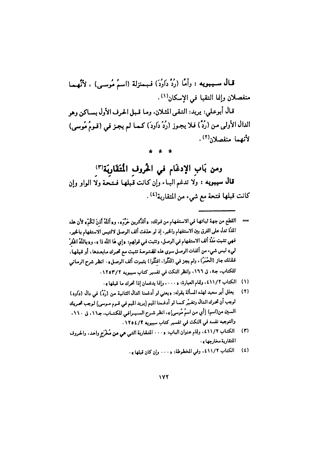 قال سيبويه: وأمّا (رُدَّ داوُدَ) فبمنزلة (اسمُ مُوسى)، لأنّهما منفصلان وإنما التقيا في الإسكان.