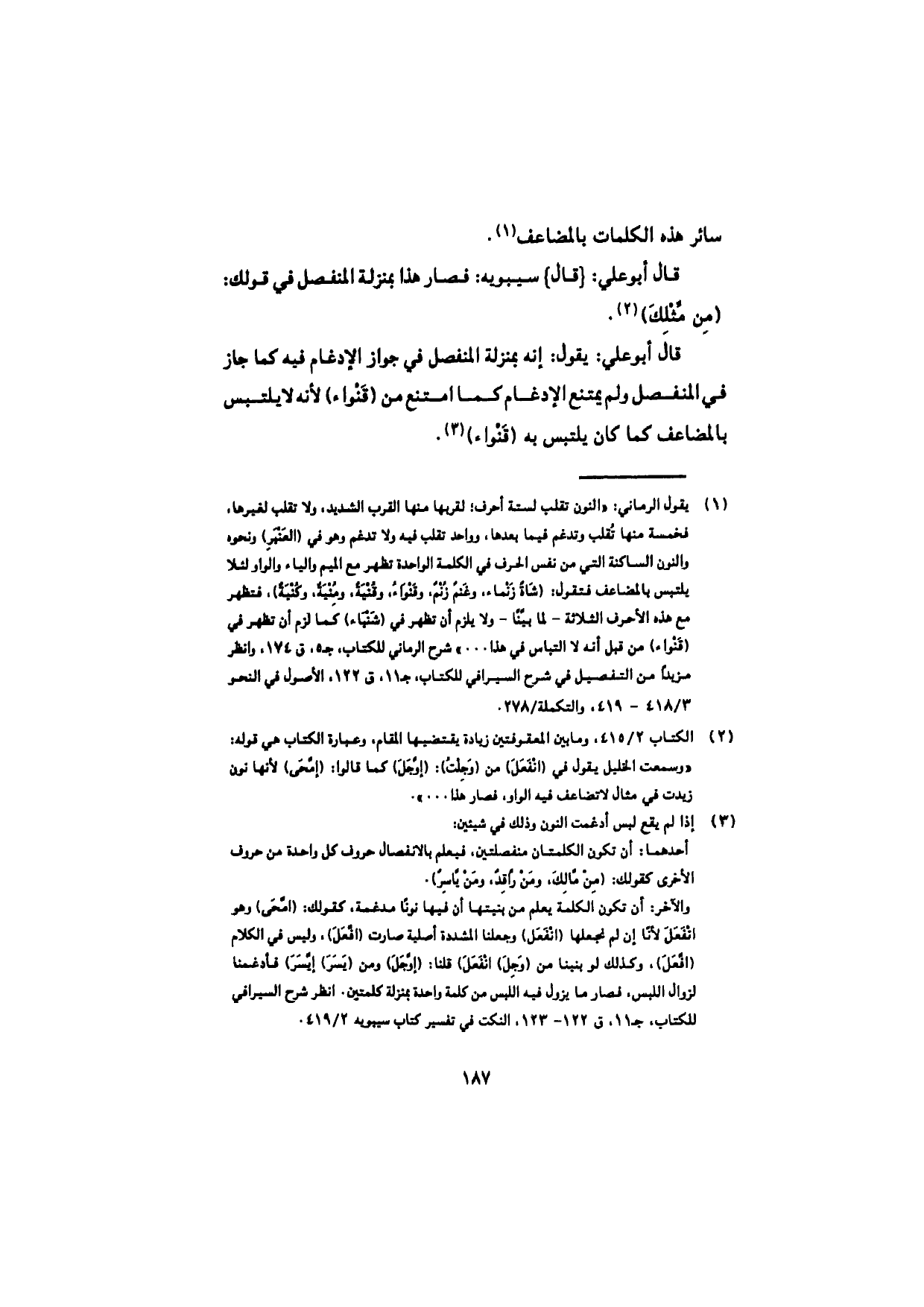 قال أبو علي: {قال} سيبويه: فصار هذا بمنزلة المنفصل في قولك: (مِن مِّثْلِكَ).