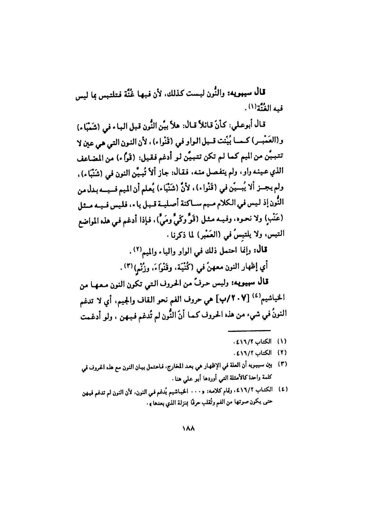 قال سيبويه: والنُّون ليست كذلك، لأن فيها غُنَّة فتلتبس بما ليس فيه الغُنَّة.