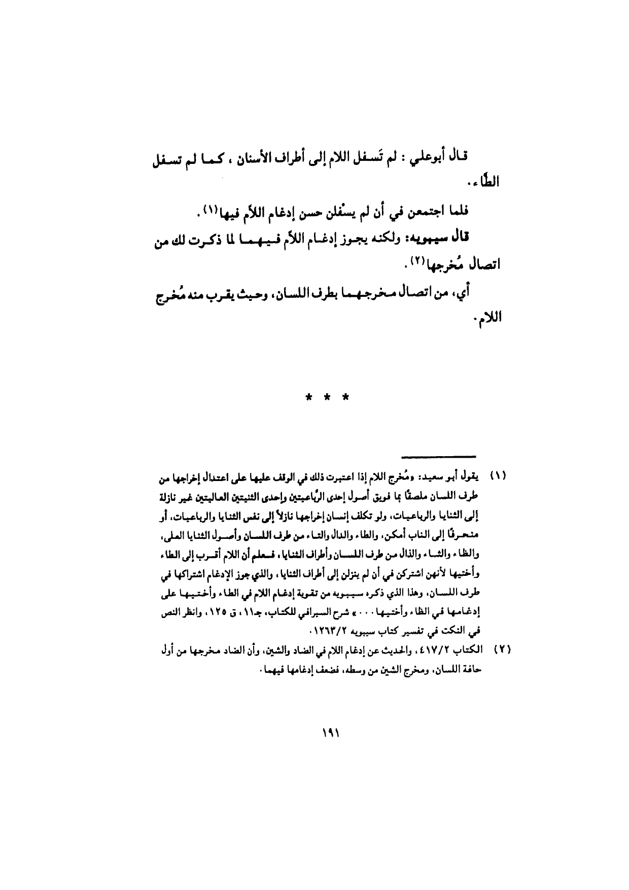 قال سيبويه: ولكنه يجوز إدغام اللاّم فيهما لما ذكرت لك من اتصال مُخرجها.