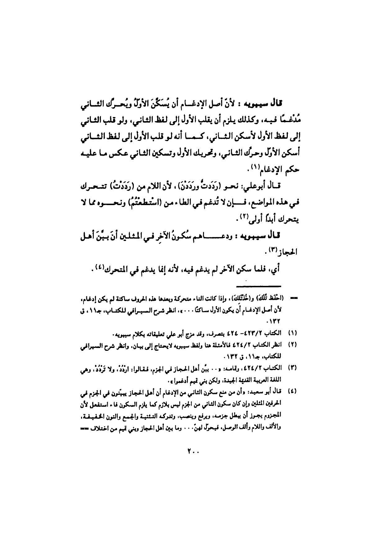قال سيبويه: ودعاهم سُكون الآخر في المثلين أن بيَّن أهل الحجاز.