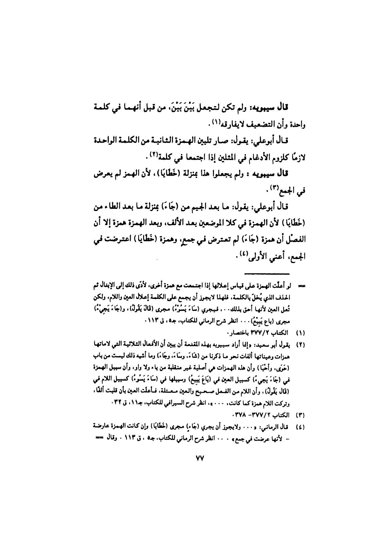 قال أبو علي: يقول: ما بعد الجيم من (جاءَ) بمنزلة ما بعد الطاء من (خَطايا) لأن الهمزة في كلا الموضعين بعد الألف، وبعد الهمزة همزة إلا أن الفصل أن همزة (جاء) لم تعترض في جمعٍ، وهمزة (خطايا) اعترضت في الجمع، أعني الأولى.