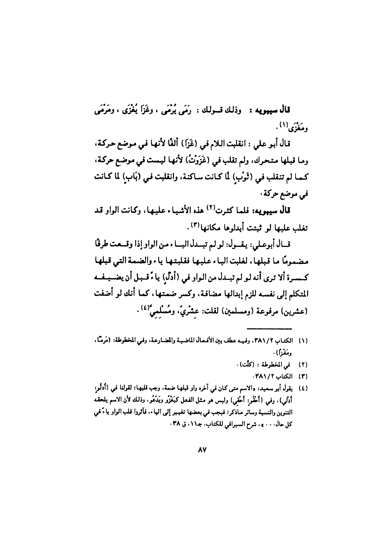 قال سيبويه: وذلك قولك: رَمَى يُرْمَى، وغَزا يُغْزَى، ومَرْمَى ومَغْزَى.