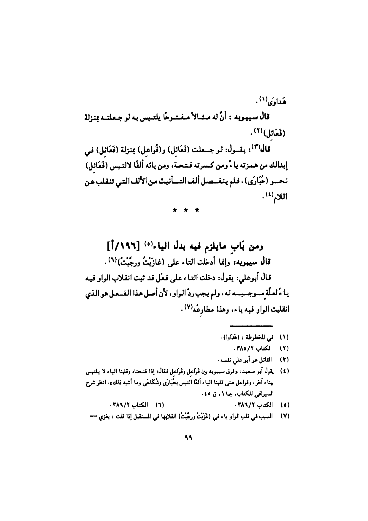 ومن باب ما يلزم فيه بدل الياء [196/أ]