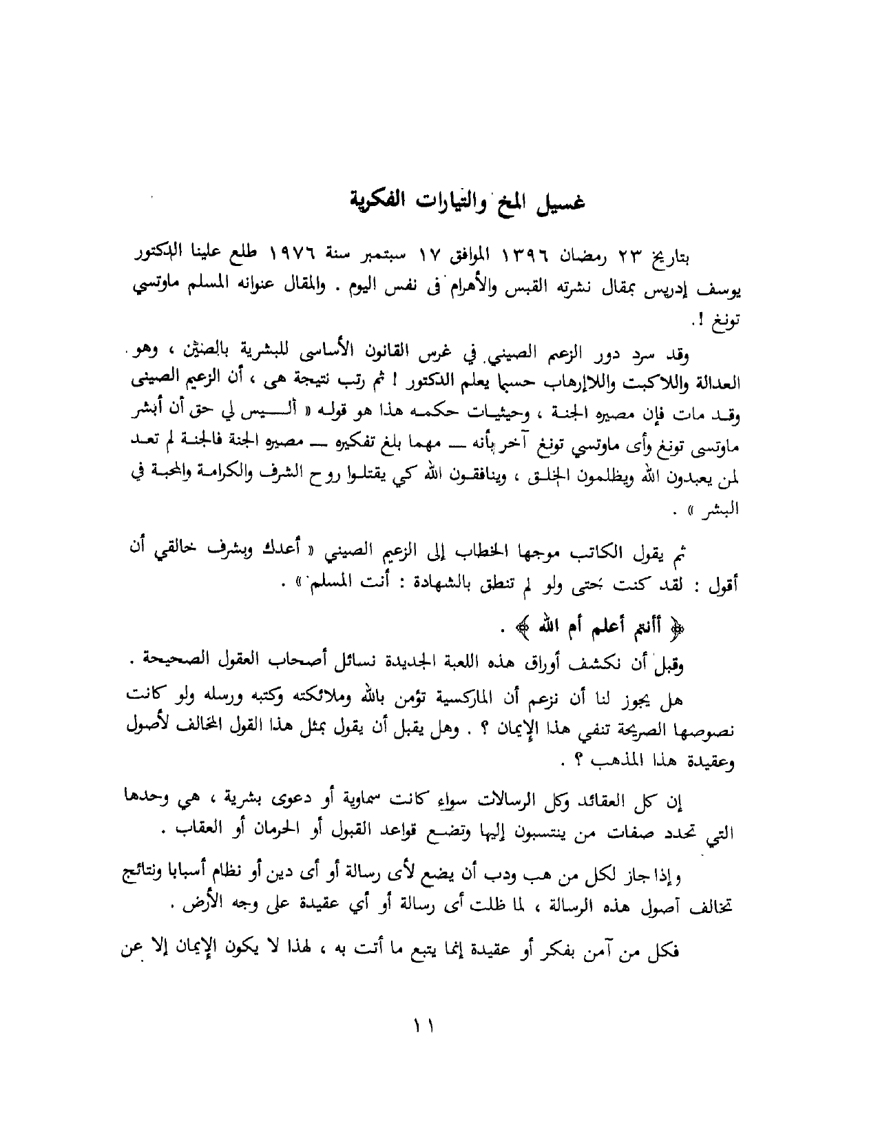 بتاريخ 23 رمضان 1396 - الموافق 17 سبتمبر سنة 1976 طلع علينا الدكتور يوسف إدريس بمقال نشرته " القبس " و" الأهرام " في نفس اليوم، والمقال عنوانه «المسلم ماوتسي تونغ!».