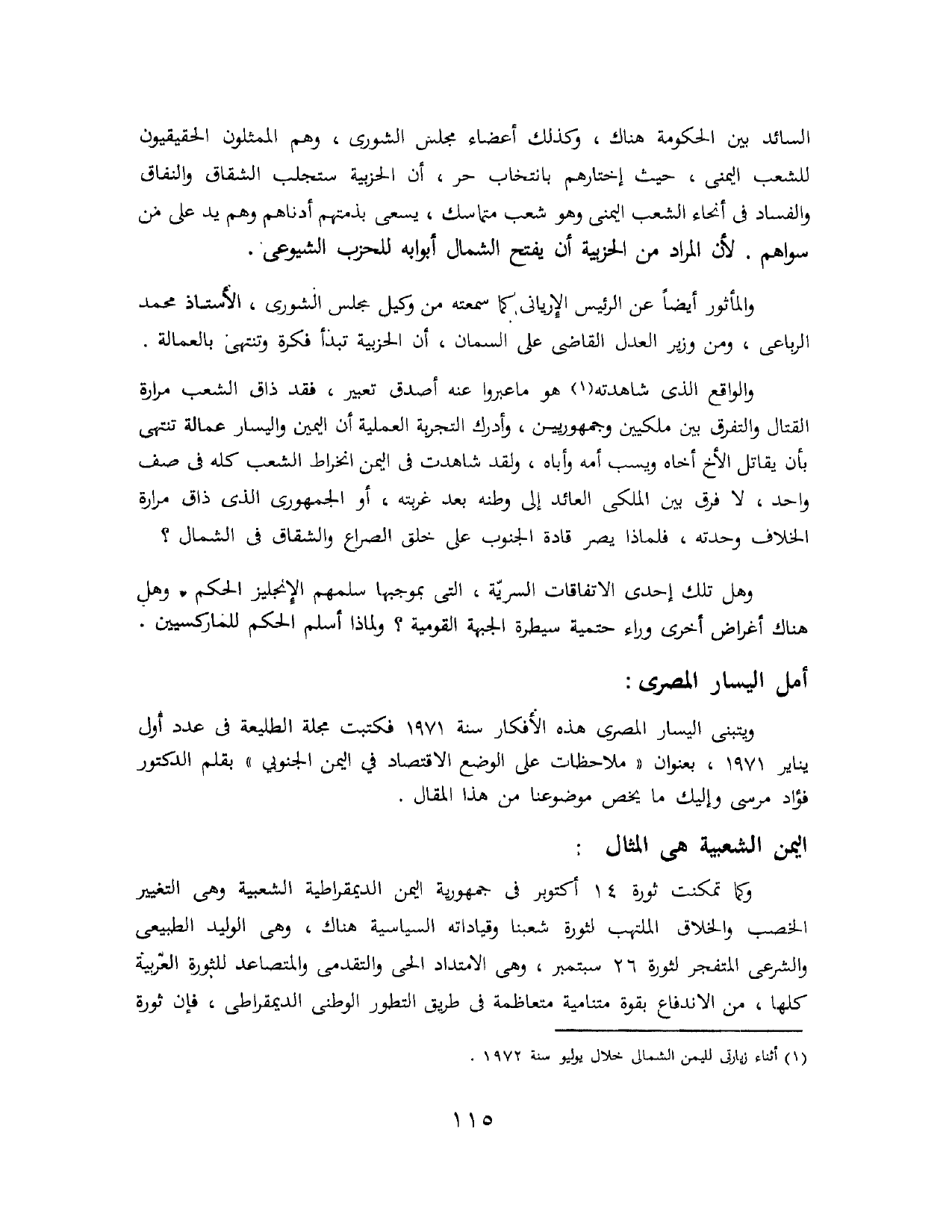 (¬1) كانت زيارتي لليمن الشمالي خلال يوليو سنة 1972.